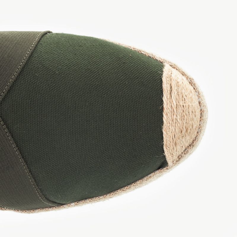 Alpargata flatform com elásticos cruzados e vazados laterais Lona verde com biqueira em corda Forr...