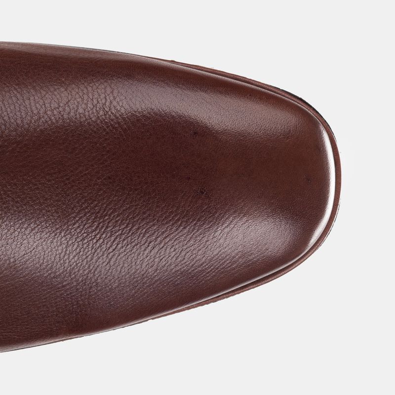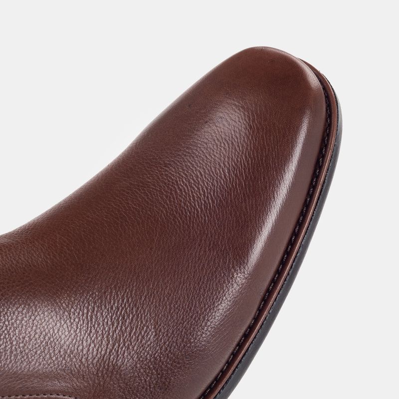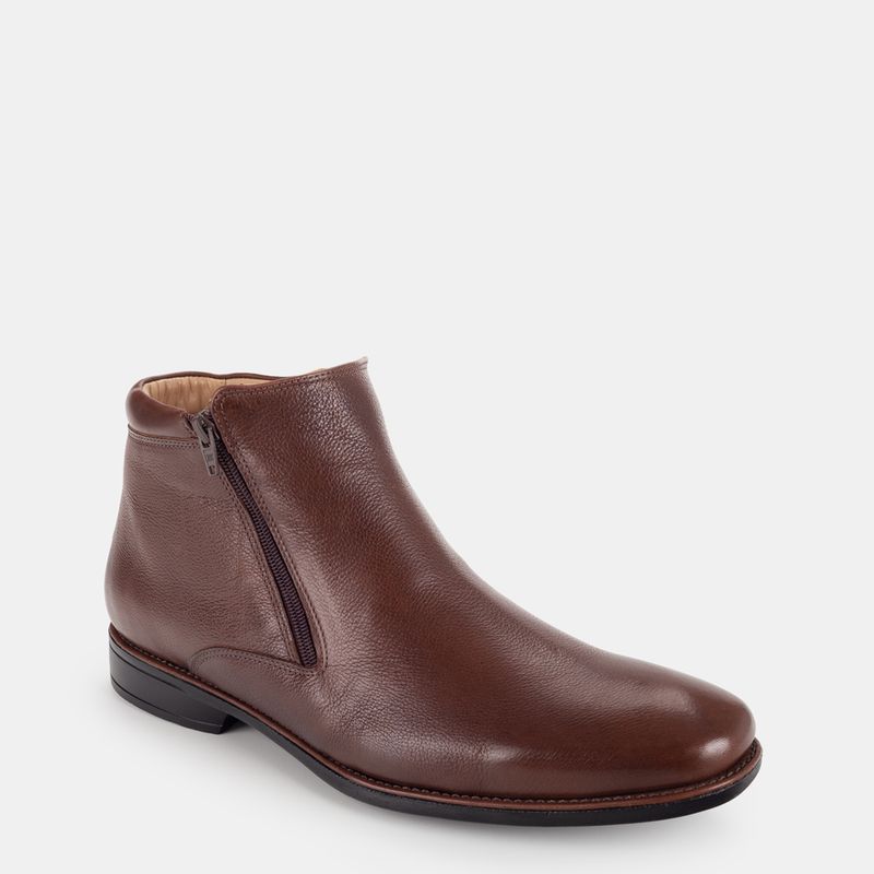 Bota com cano baixo e zíperes laterais Couro chocolate e zíperes café Forro em couro Palmilha for...