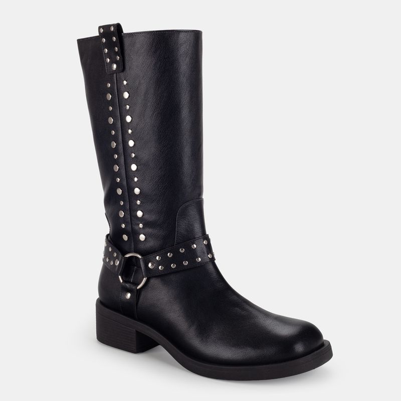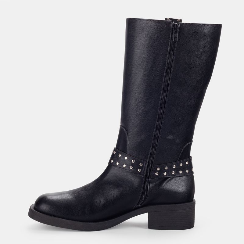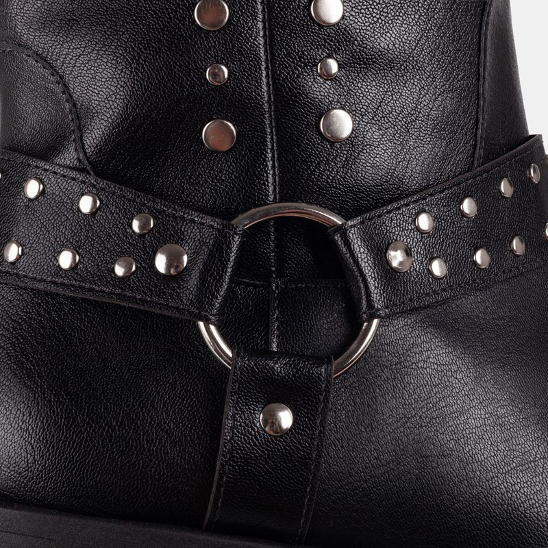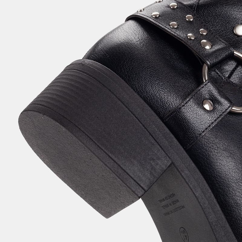 A Bota Biker Preta é o ícone máximo da atitude urbana. O contraste entre o material premium preto e ...
