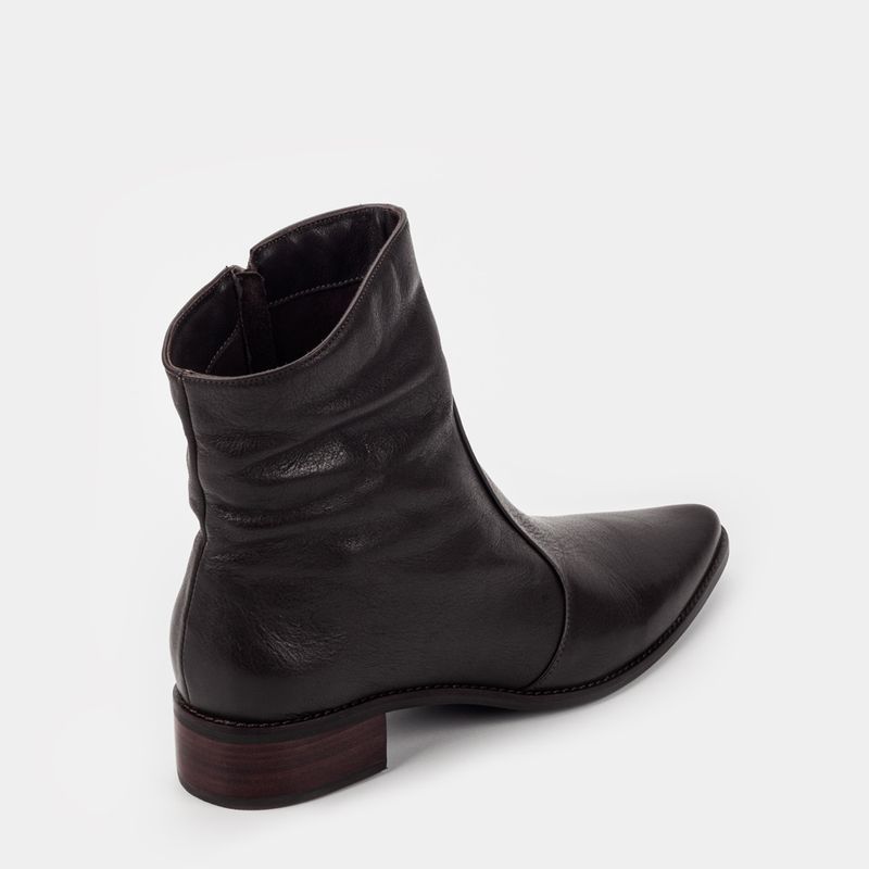 Bota com bico fino, cano baixo e recortado em viés Couro macio café Salto 2,5 cm Altura do cano (...