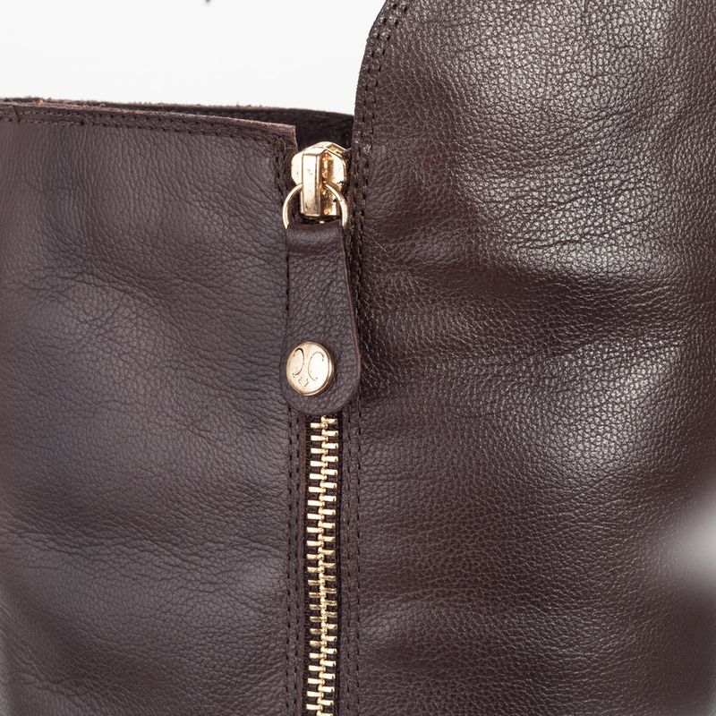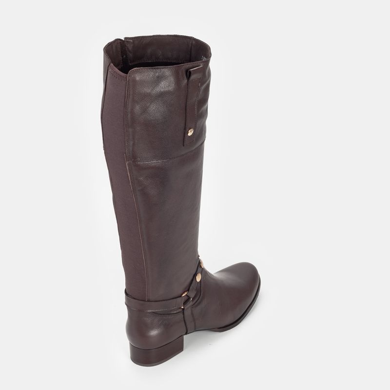 Bota com cano alto com enfeite de argola, tira de tecido elástico na traseira para melhor caimento e...
