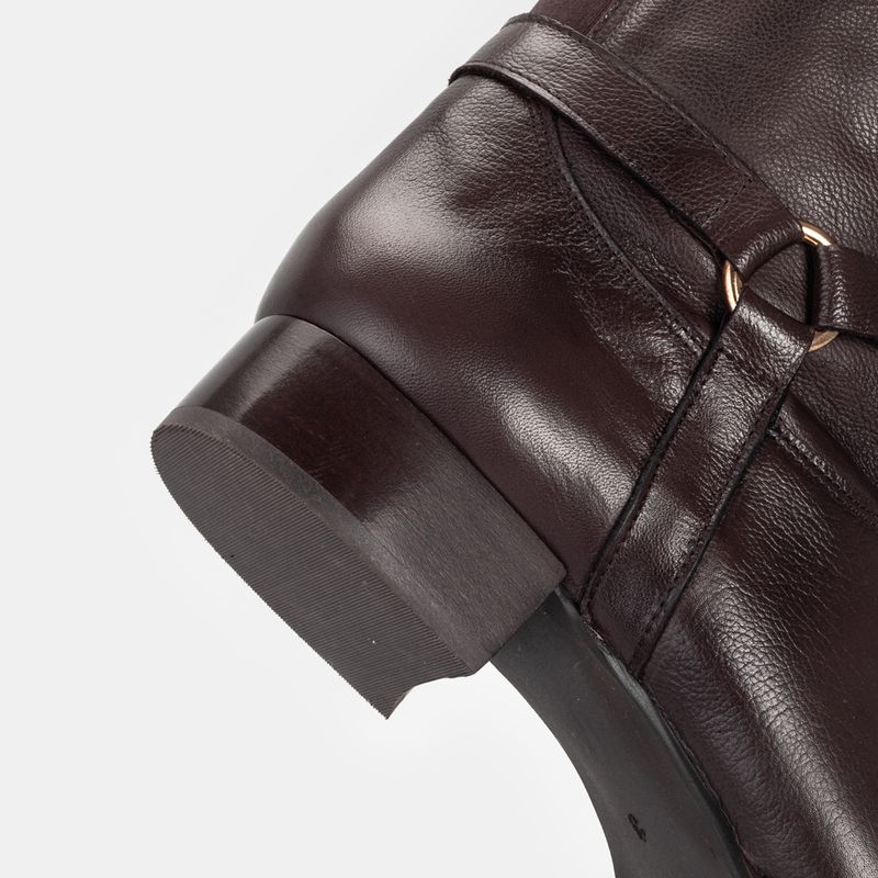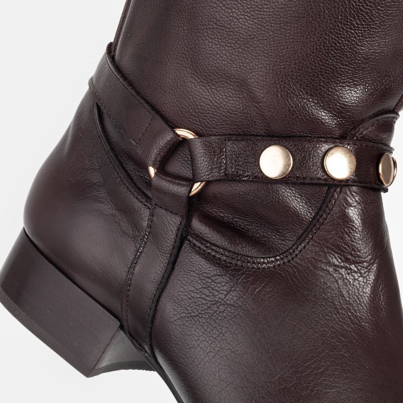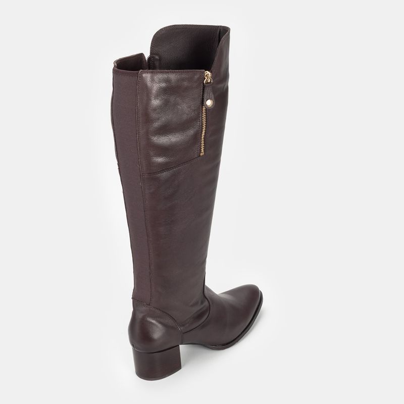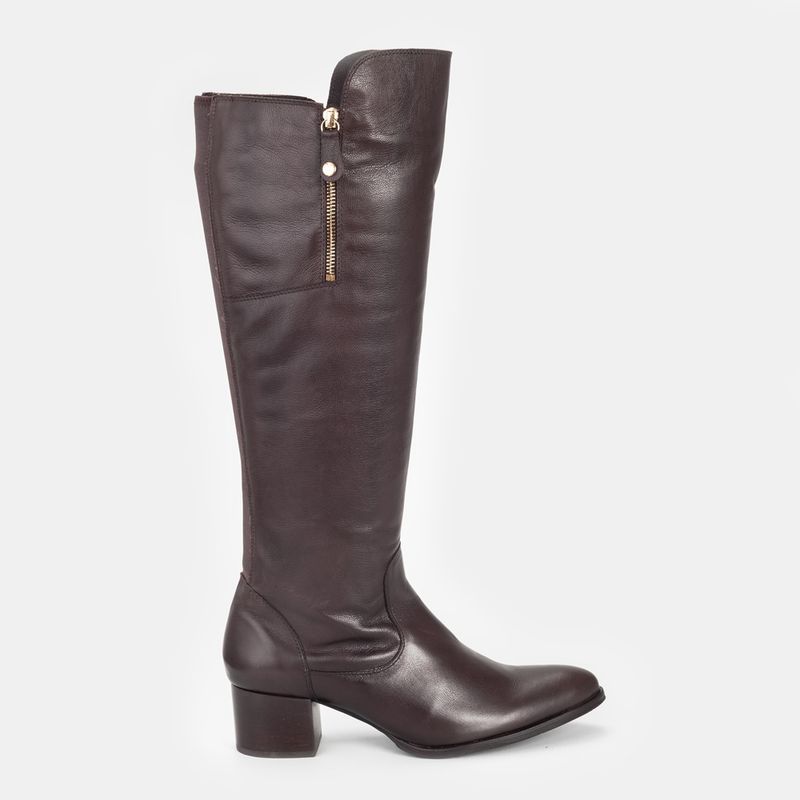 Bota com cano alto, salto médio e blocado, bico redondo e zíperes nas laterais Zíper lateral para me...