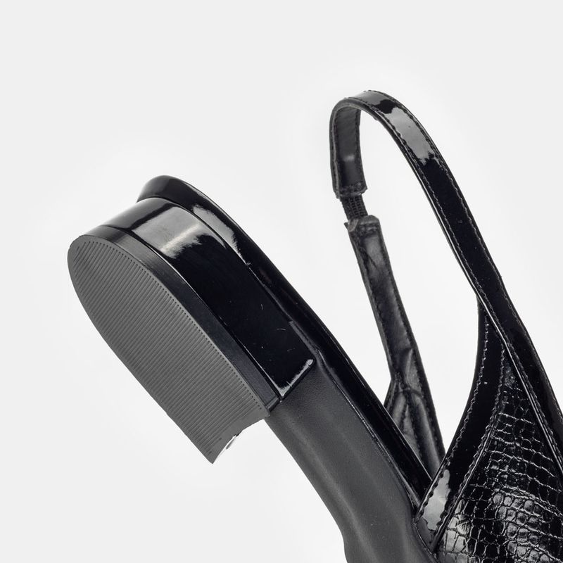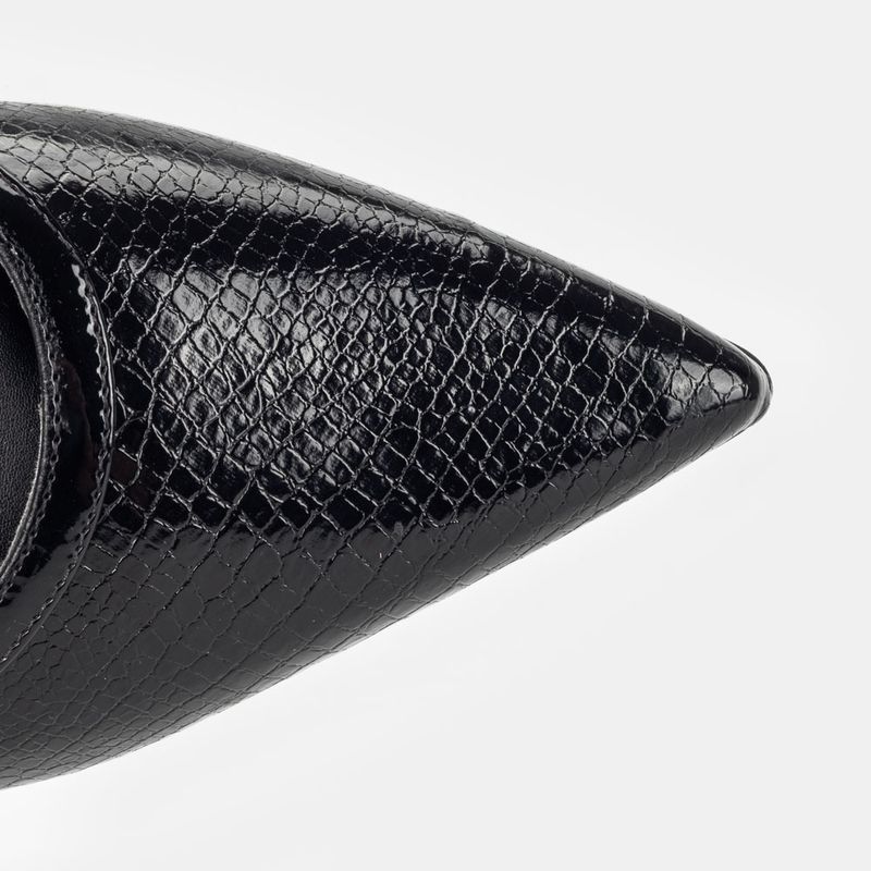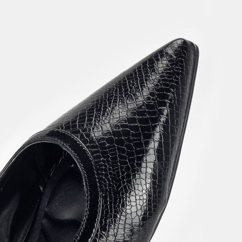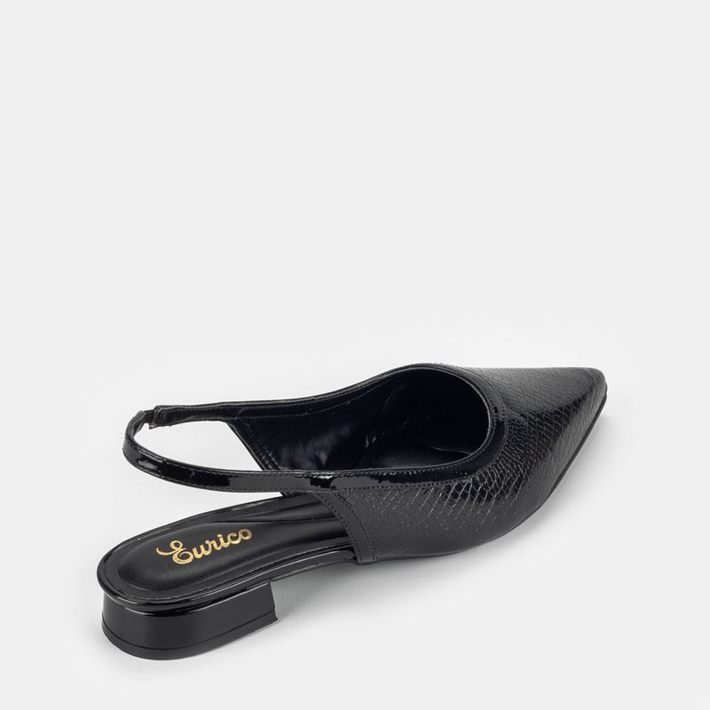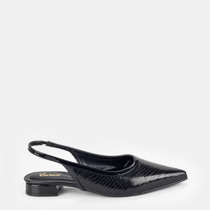 Chanel com salto blocado, bico fino e tira fina em elástico para o calc...