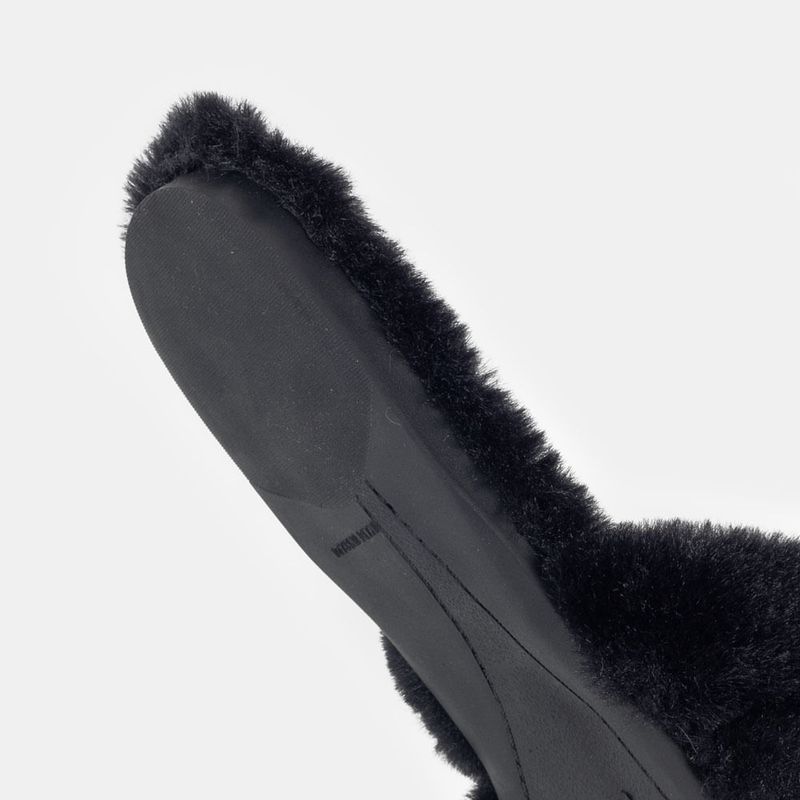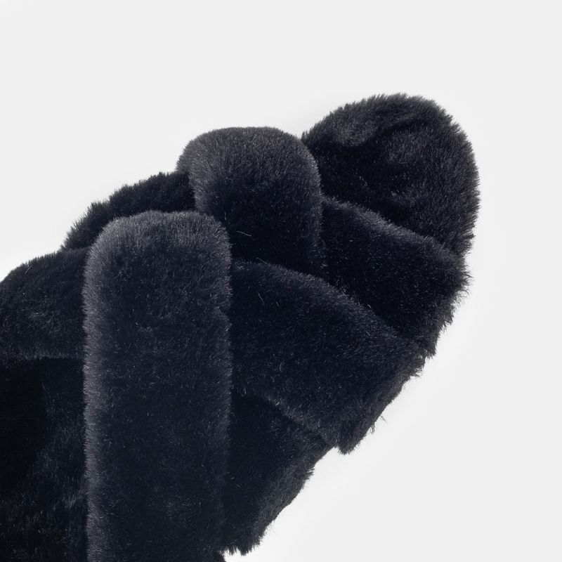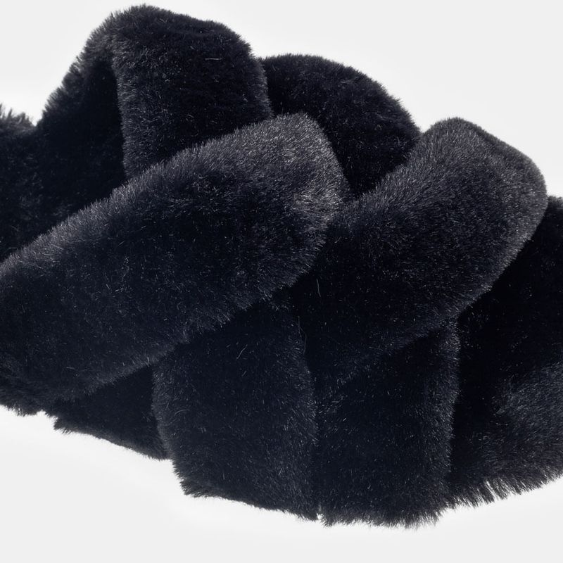Chinelo de quarto com tiras entrelaçadas Pelo super macio preto Forro em pelo Palmilha forrada em pe...