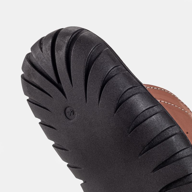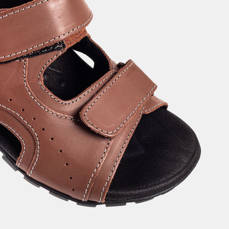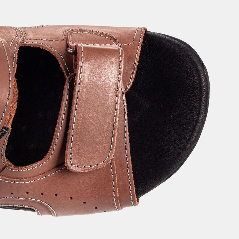 Chinelo com velcro para ajuste das tiras e acabamento pespontado Couro canela Palmilha anti-stress...