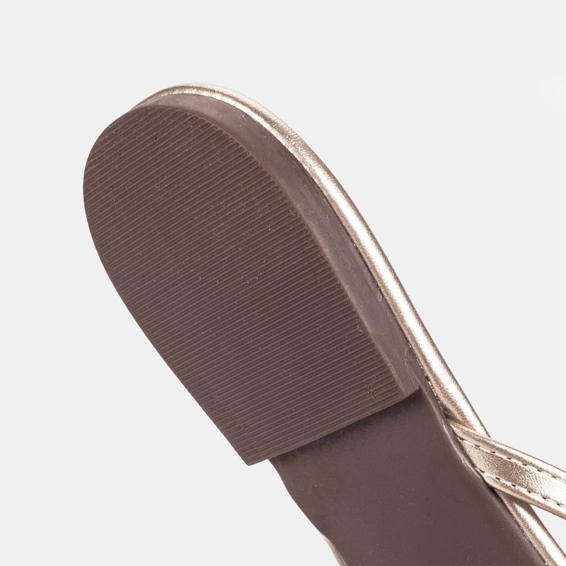 Este chinelo rasteiro em tom de ouro é a peça perfeita para quem busca um toque de glamour e sofisti...