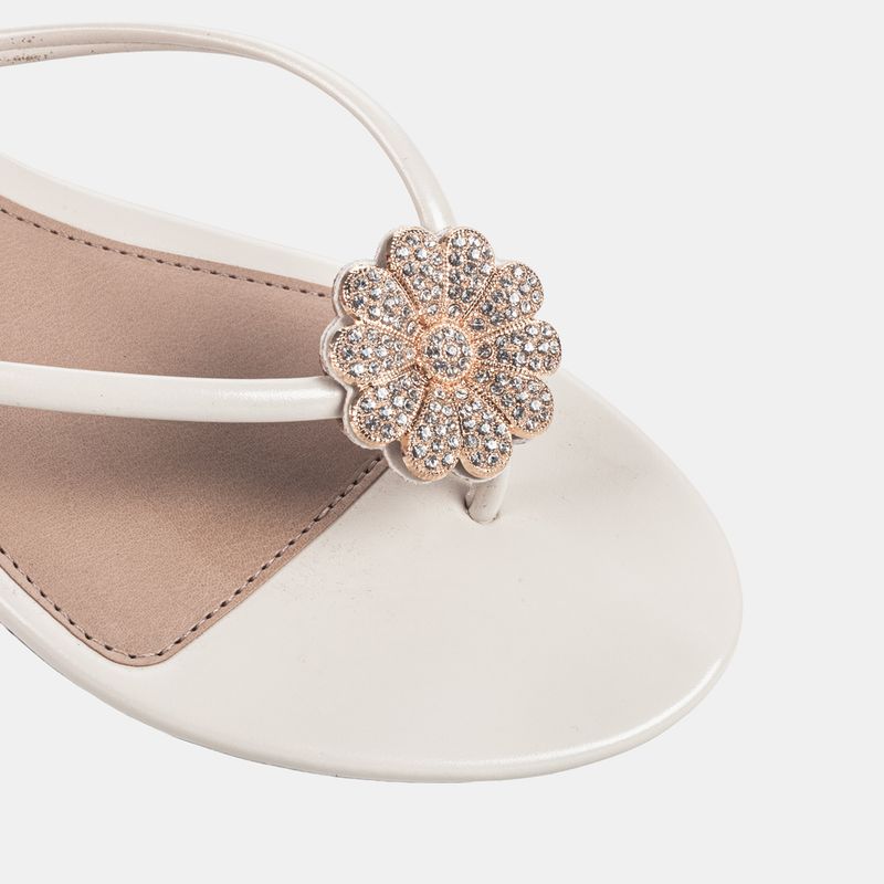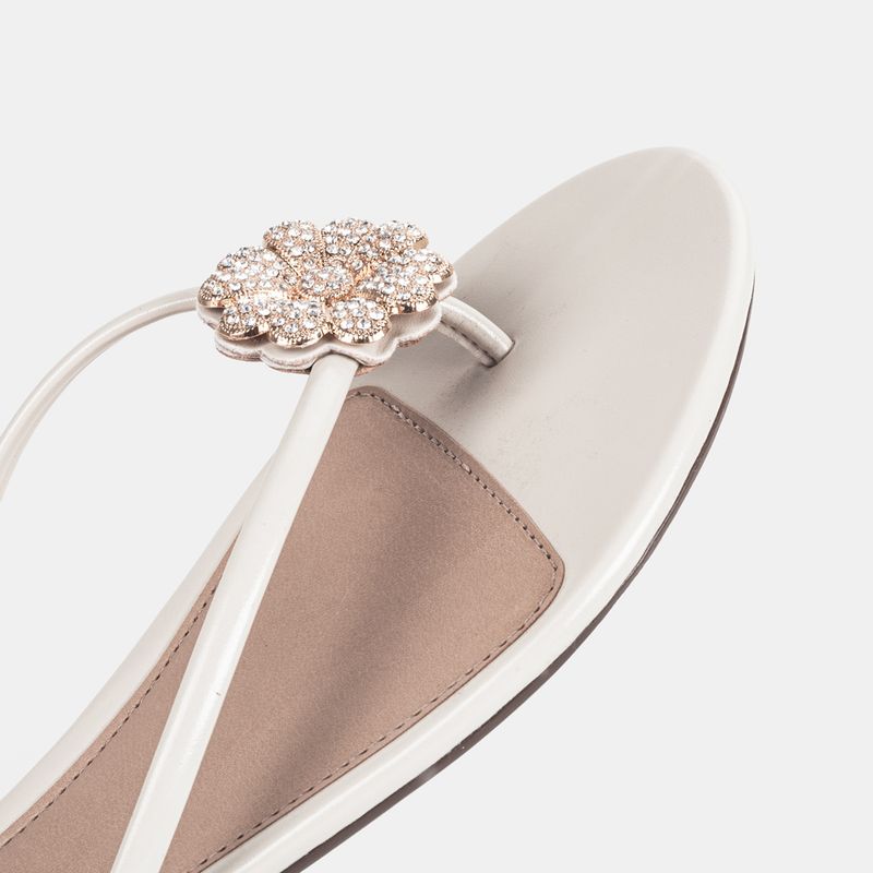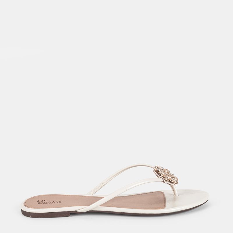 Este chinelo rasteiro off-white é a peça perfeita para quem busca um toque de delicadeza e brilho pa...