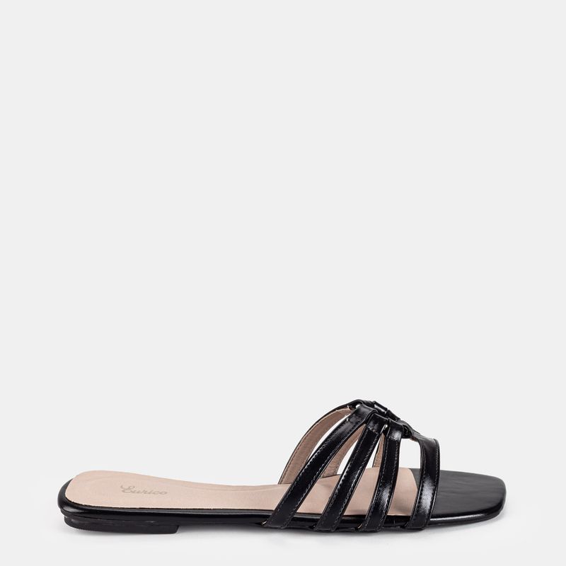 Este chinelo rasteiro é moderno e versátil, feito em material sintético na cor Preta. O solado raste...