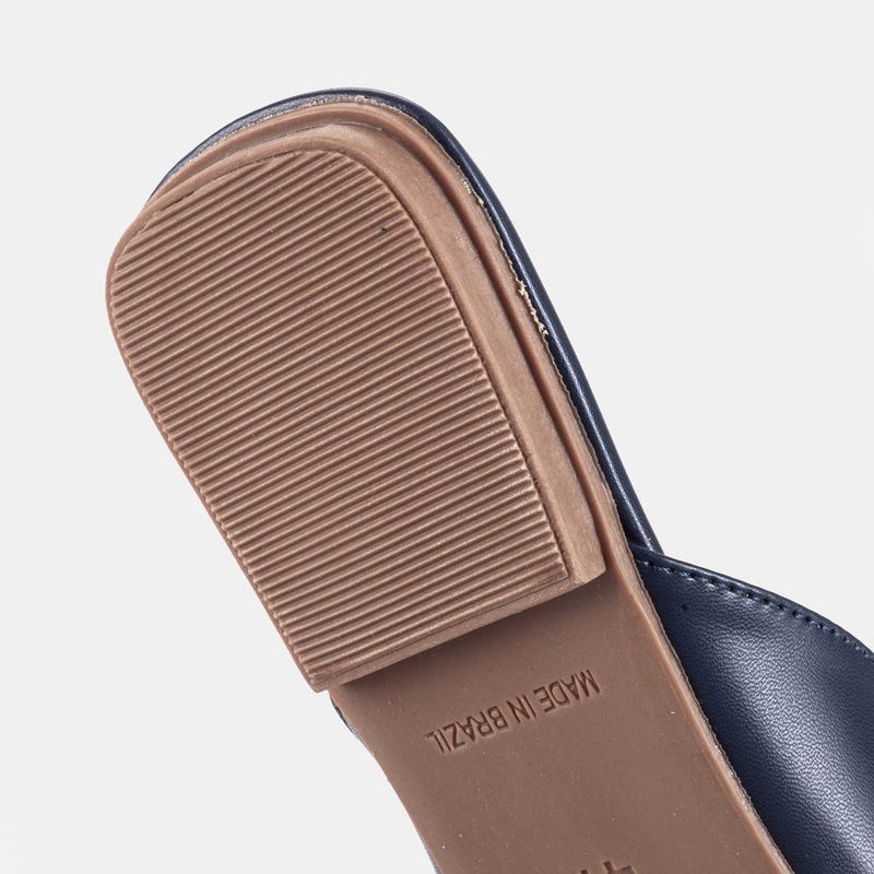 Este chinelo rasteiro é confeccionado em material sintético na cor azul marinho, sendo um modelo dis...