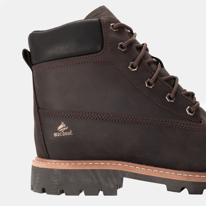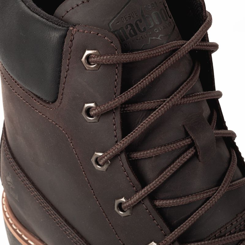 Coturno Macboot adventure com puxador traseiro e amarração em cadarço Couro emborrachado café com c...