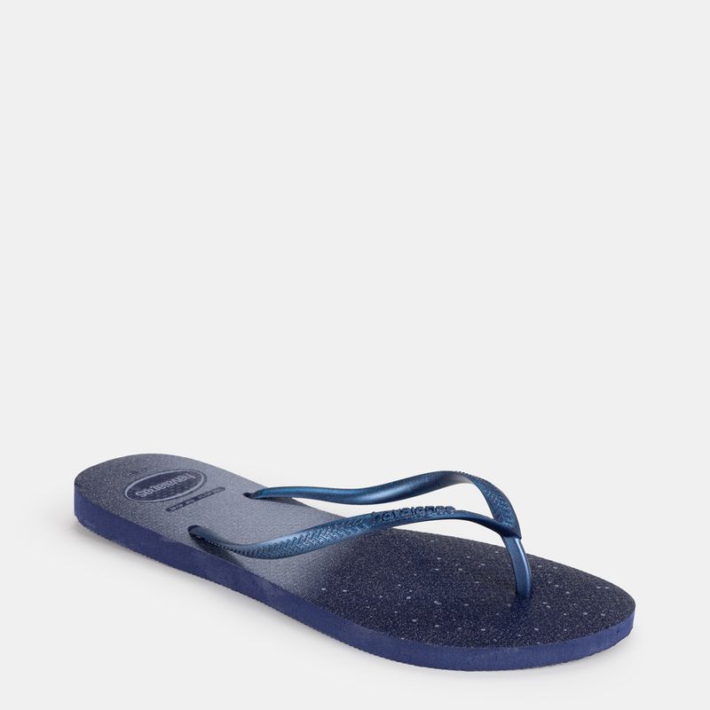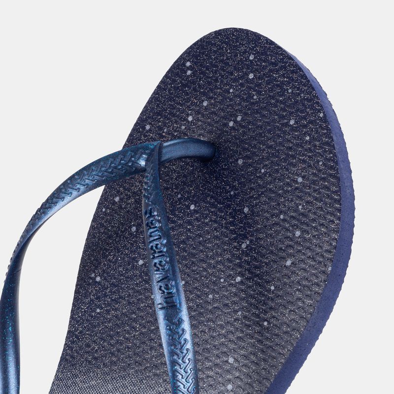 Palmilha marinho, detalhe degradê, solado marinho e tiras com glíter (glit...