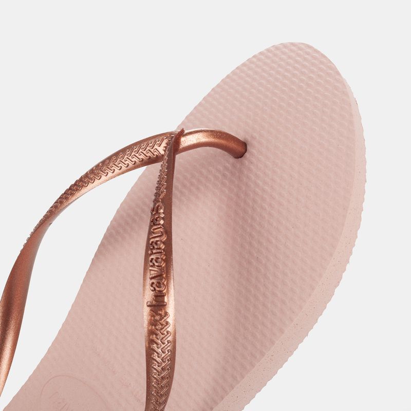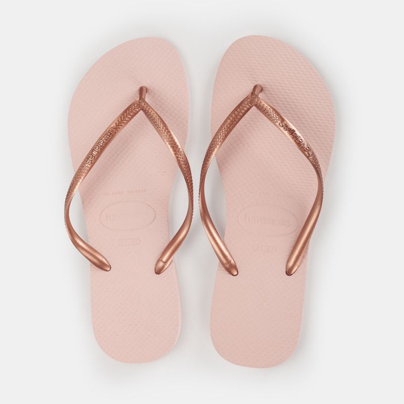 Havaianas Slim Palmilha rosa e tiras peroladas rosê Tiras finas Obs.: numeração dupla - Exemplo...