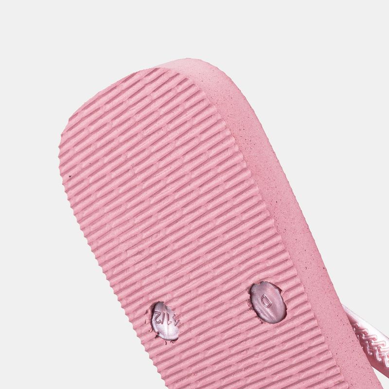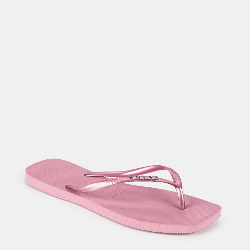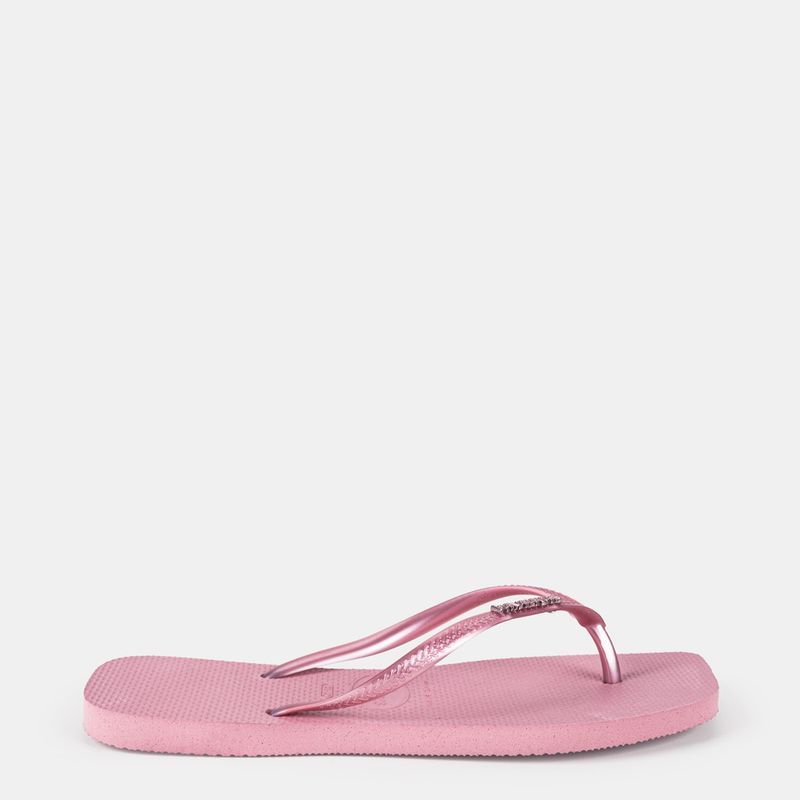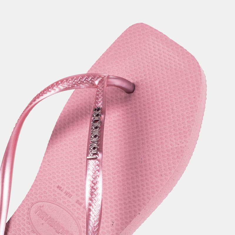 Havaianas Slim Square Logo Metallic rosa claro com tiras metalizadas e logo metálico