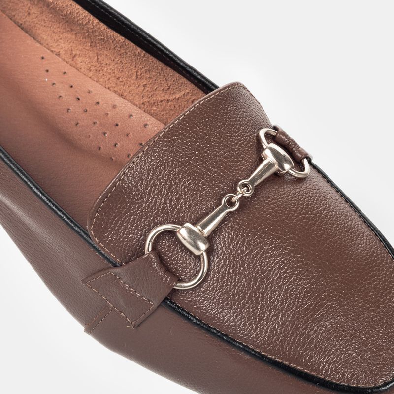 Mocassim com bico quadrado e fivela frontal dourada Mais informações
