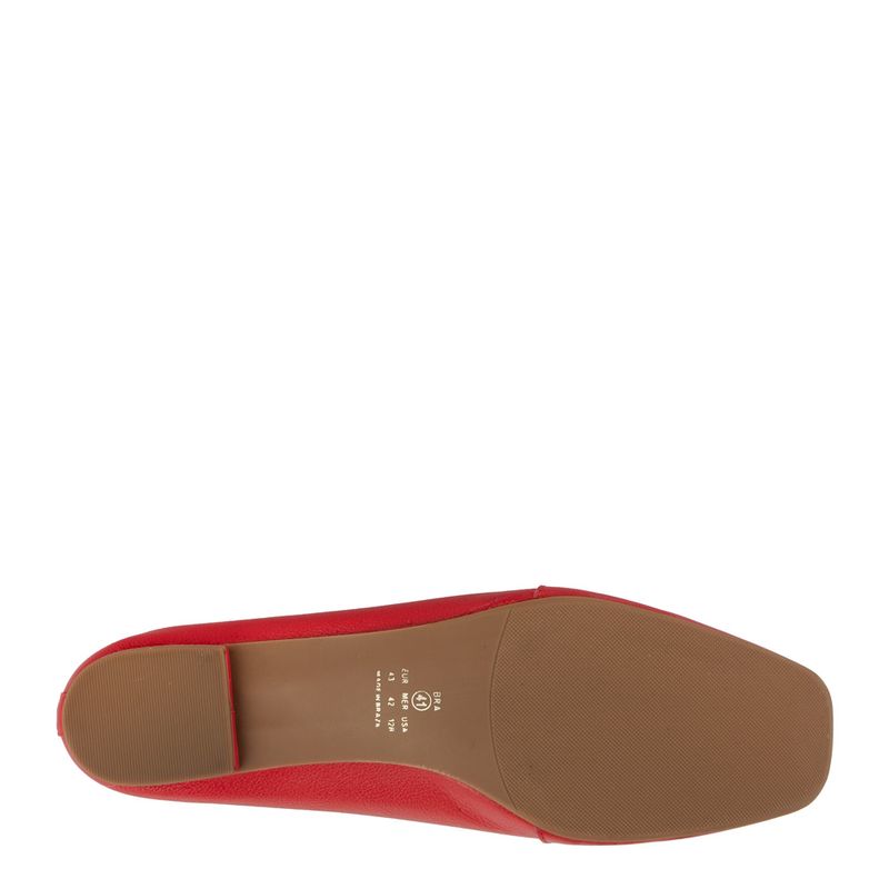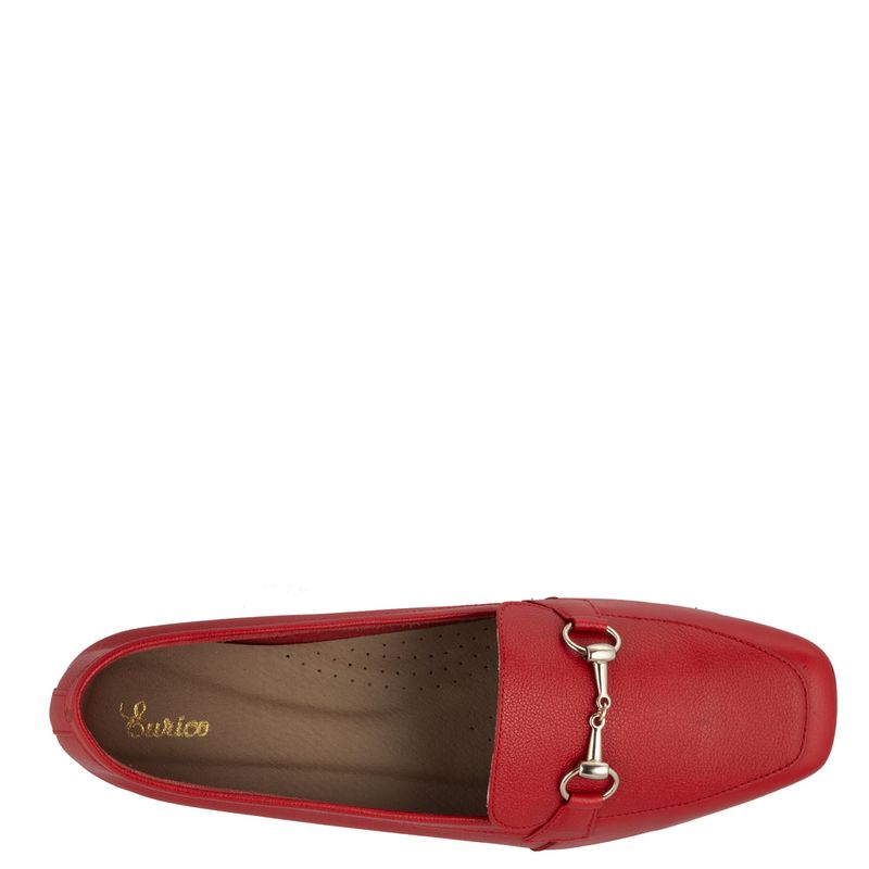 Mocassim com bico quadrado e enfeite frontal Couro macio vermelho Metal dourado Forro parcial em ...
