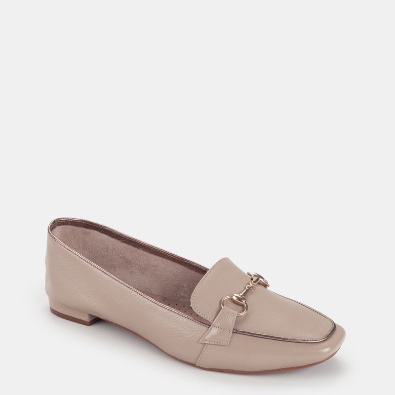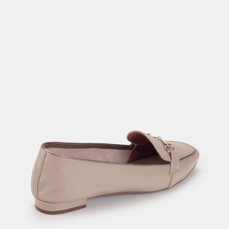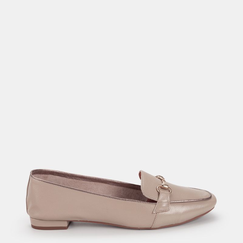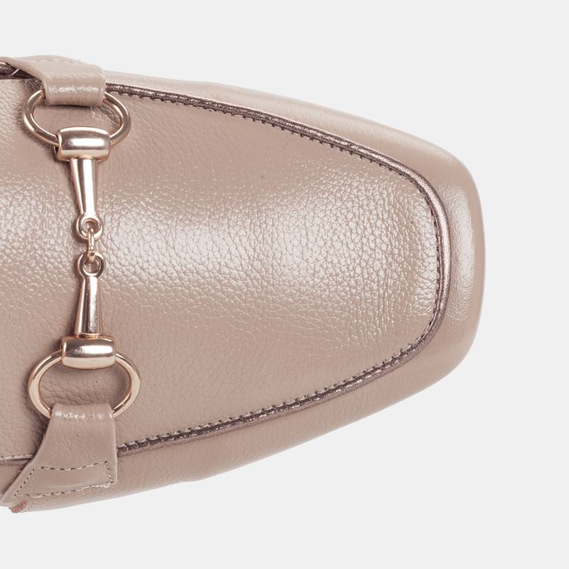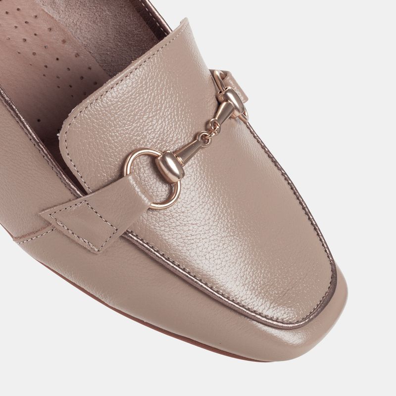 Este mocassim combina a neutralidade do bege com o charme dos metais.