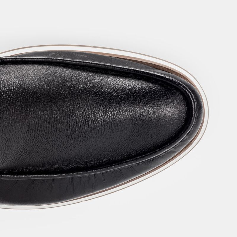 Mocassim casual com acabamento pespontado e entressola listrada Couro macio preto Forro parcial em...
