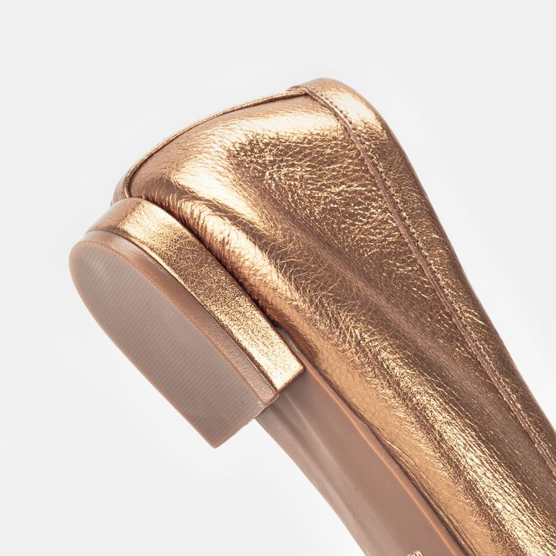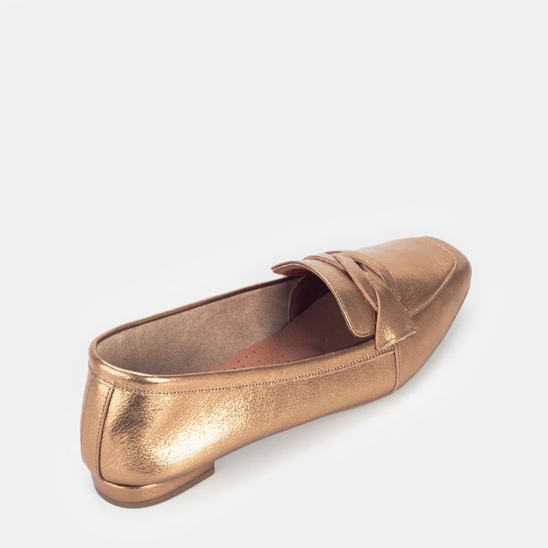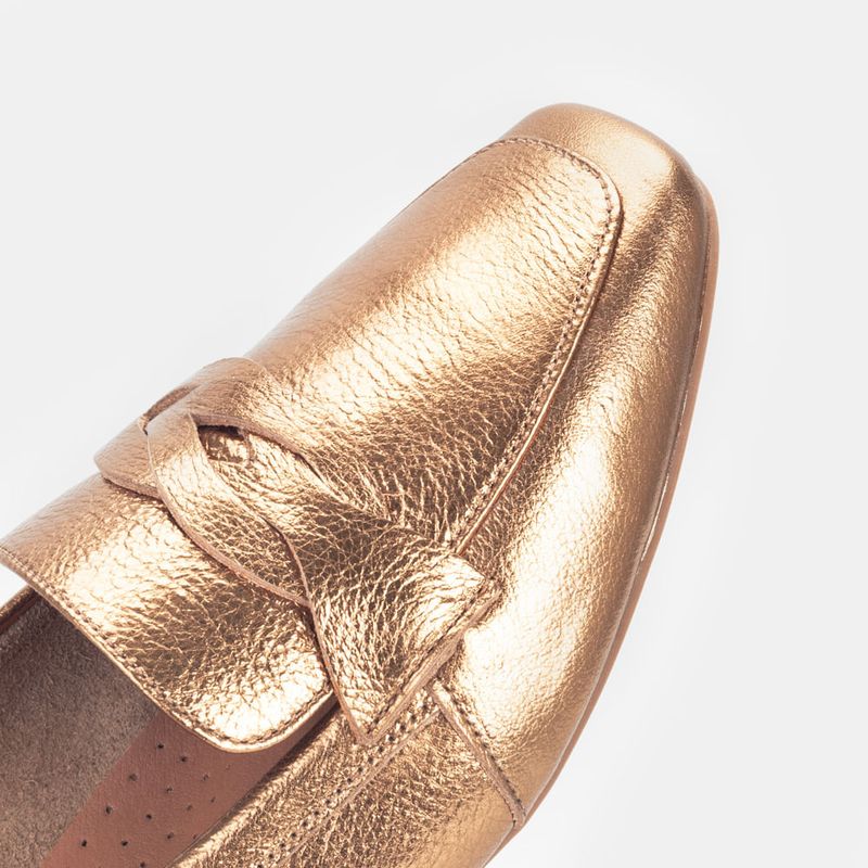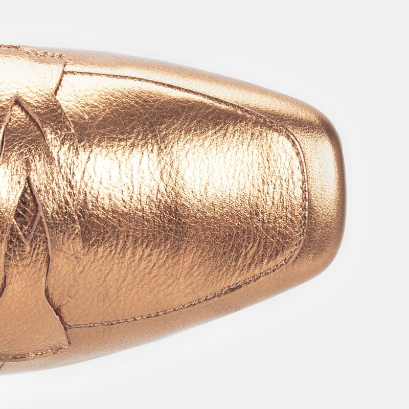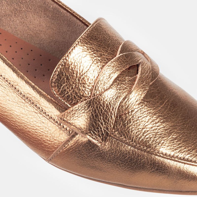Mocassim com tira frontal trançada e bico quadrado Couro bronze Forro em tecido sedoso Solado de bor...