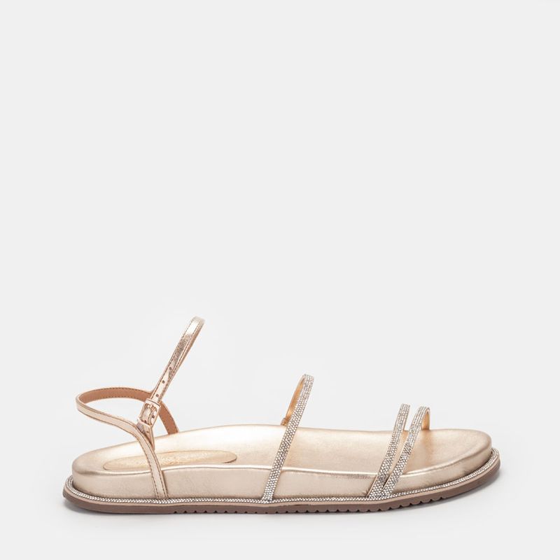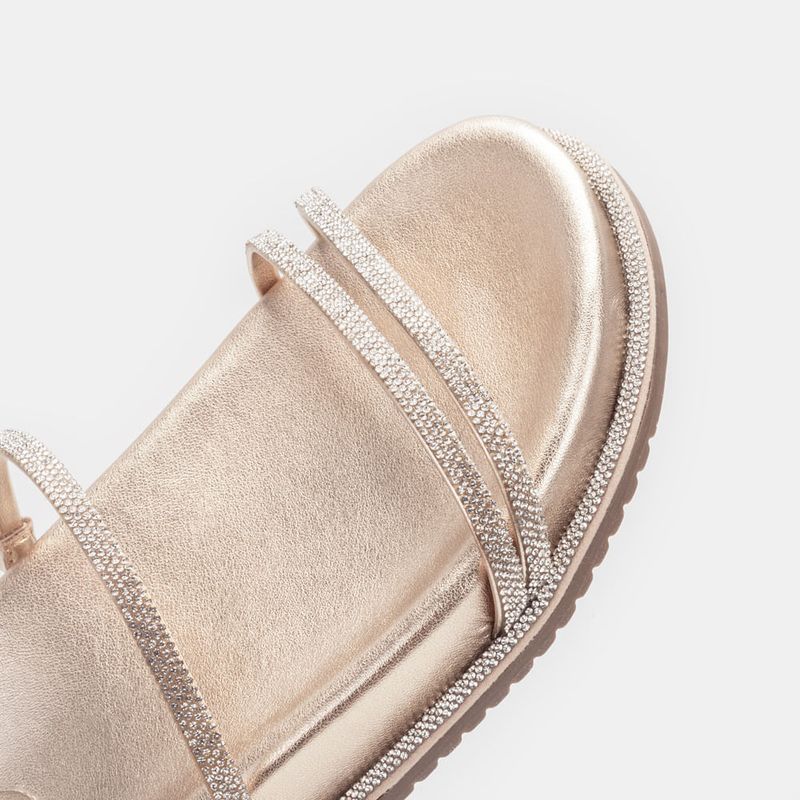 Sandália estilo papete e tiras com strass incolor Sintético ouro Salto 2,5 cm Strass incolor Palmilh...