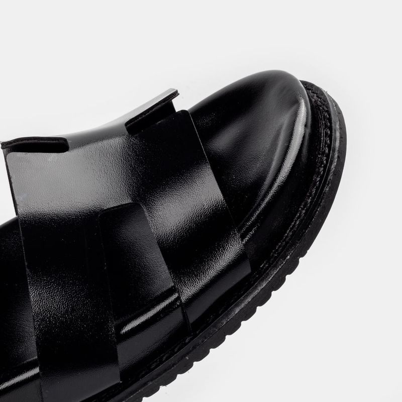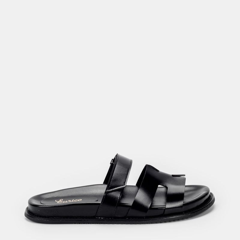 Chinelo estilo papete com tiras retangulares Sintético preto Salto 2,5 cm Forro em tecido sedoso Pal...