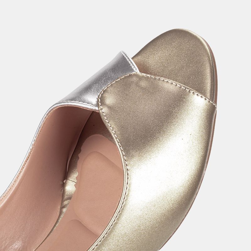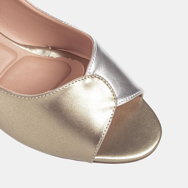 Com um toque de brilho e modernidade bicolor, este peep toe em tom metalizado é a peça perfeita para...