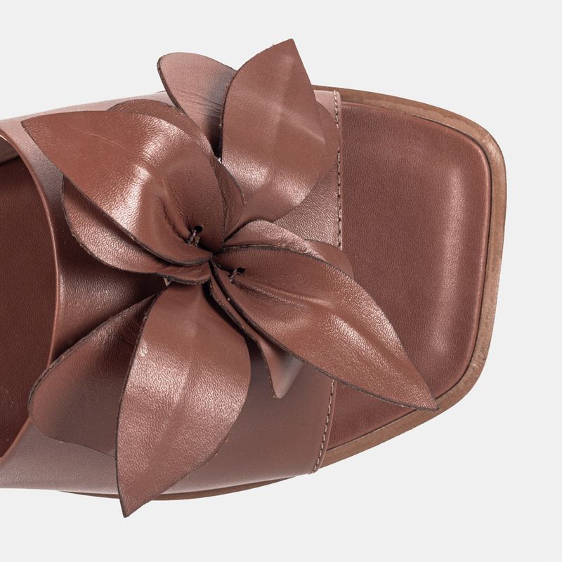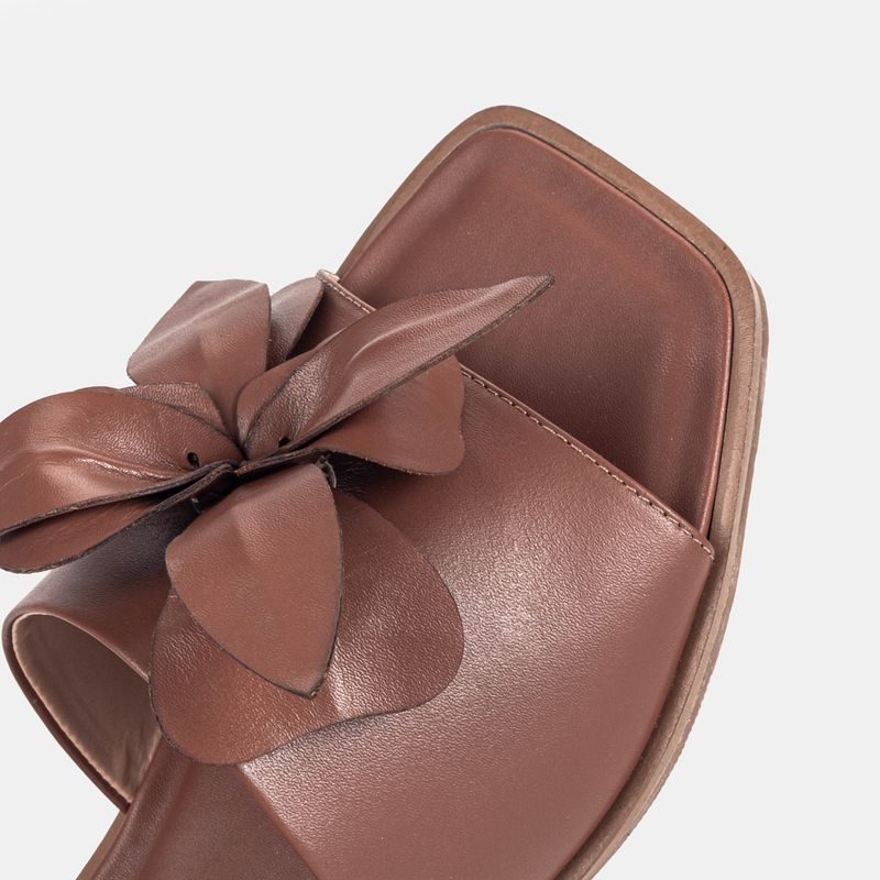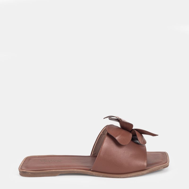 Em tom terroso e com flor aplicada no cabedal, essa rasteira mar...