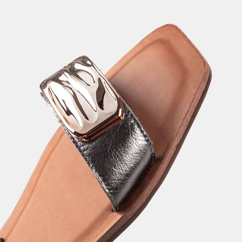 Esta rasteira é uma peça moderna e confortável, ideal para quem busca um calçado flat com um toque d...