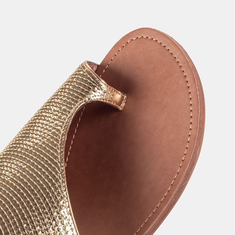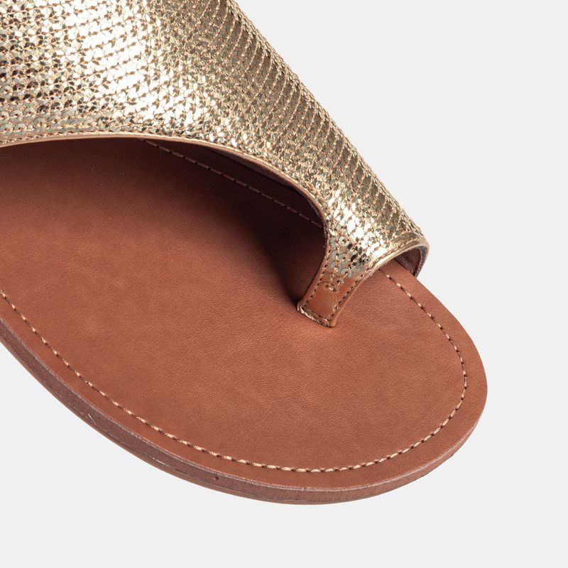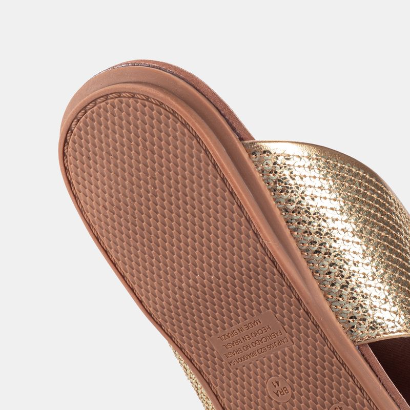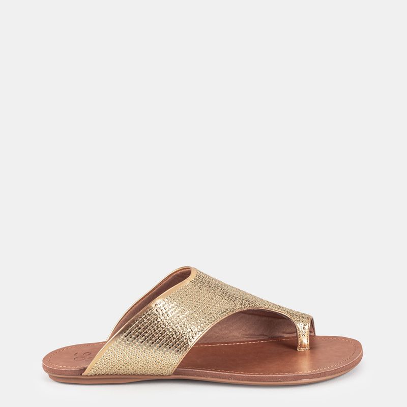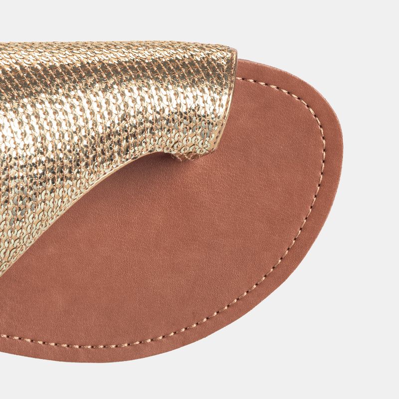 Rasteira de dedo com lateral interna fechada e cabedal com manta de paetês Sintético ouro Paetê ou...