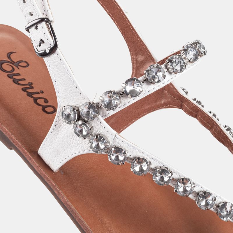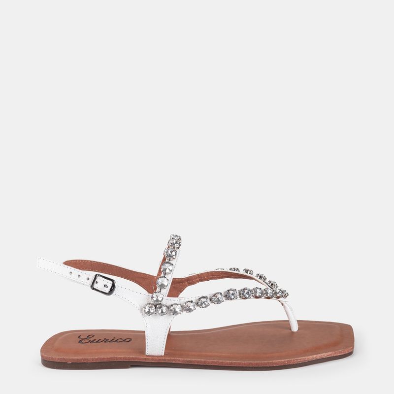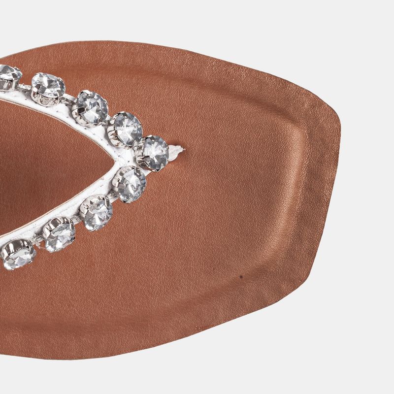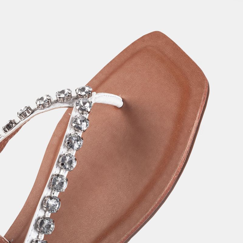 Esta rasteira combina a elegância do couro com o brilho das pedrarias, ideal para dar um toque sofis...