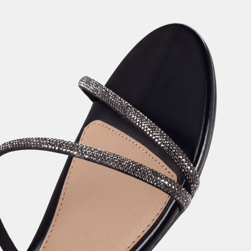 Este modelo é a escolha ideal para um visual "glam" discreto. O brilho escuro das pedrarias confere ...