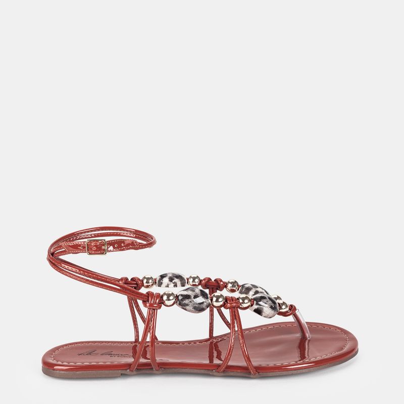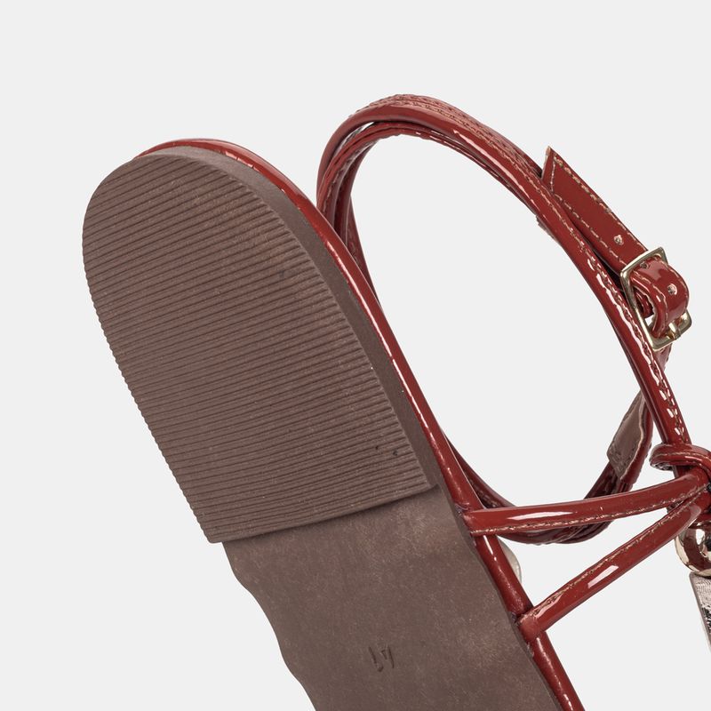 Esta rasteira marrom claro com acabamento em verniz é a escol...