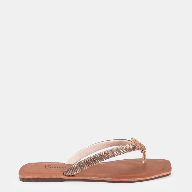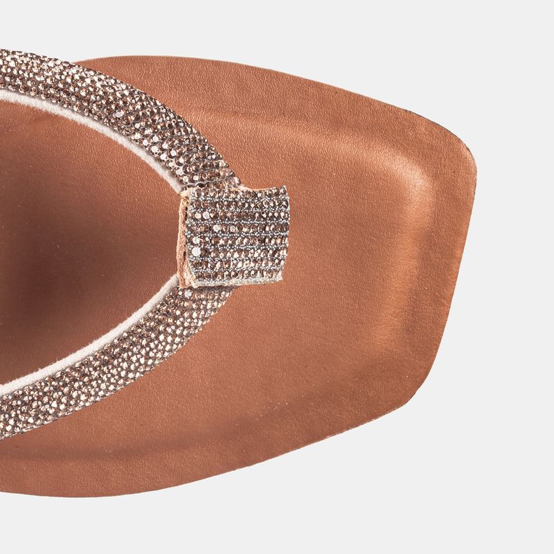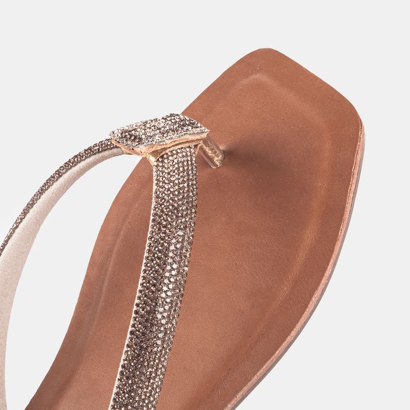 Rasteira de dedo com tira crajevada de strass em tom dourado