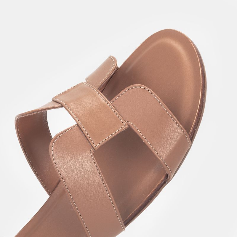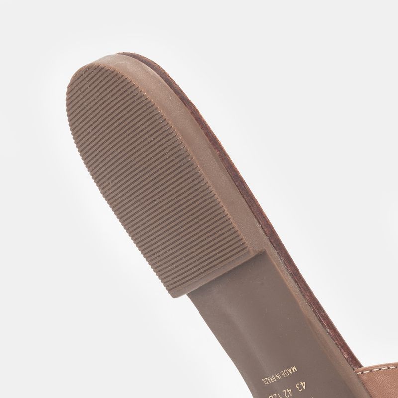 Rasteira bico quadrado, tira reta, flatform Couro canela Palmilha forrada, acolchoada e macia Sol...