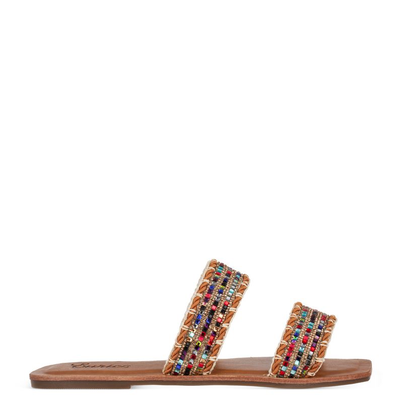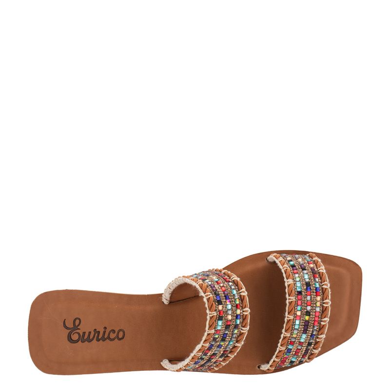 Rasteira com tiras grossas com aplicações de strass e pedras coloridas Sintético multicor chocolate...