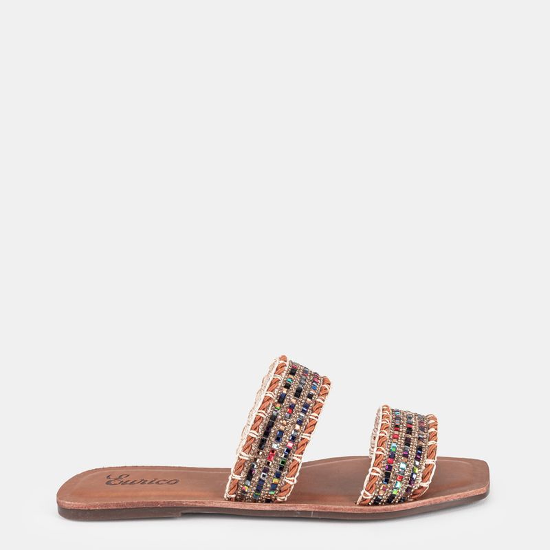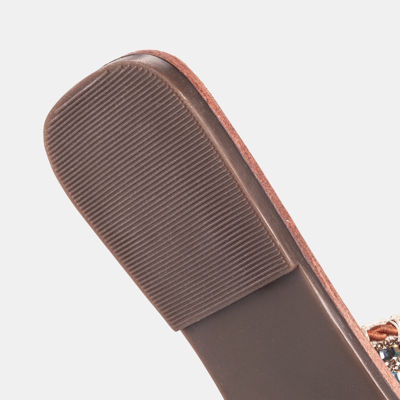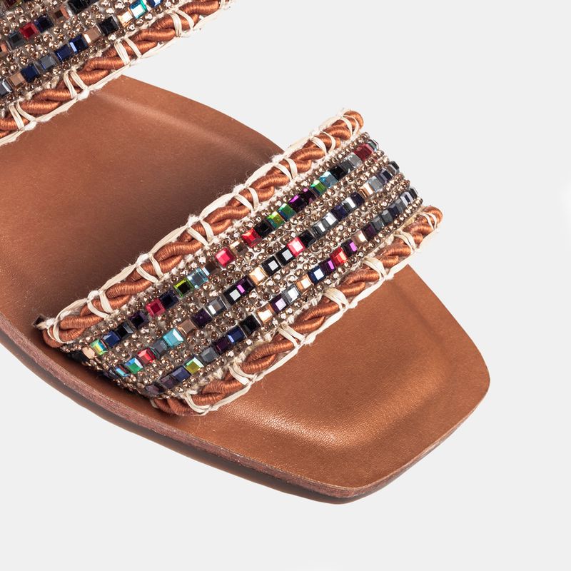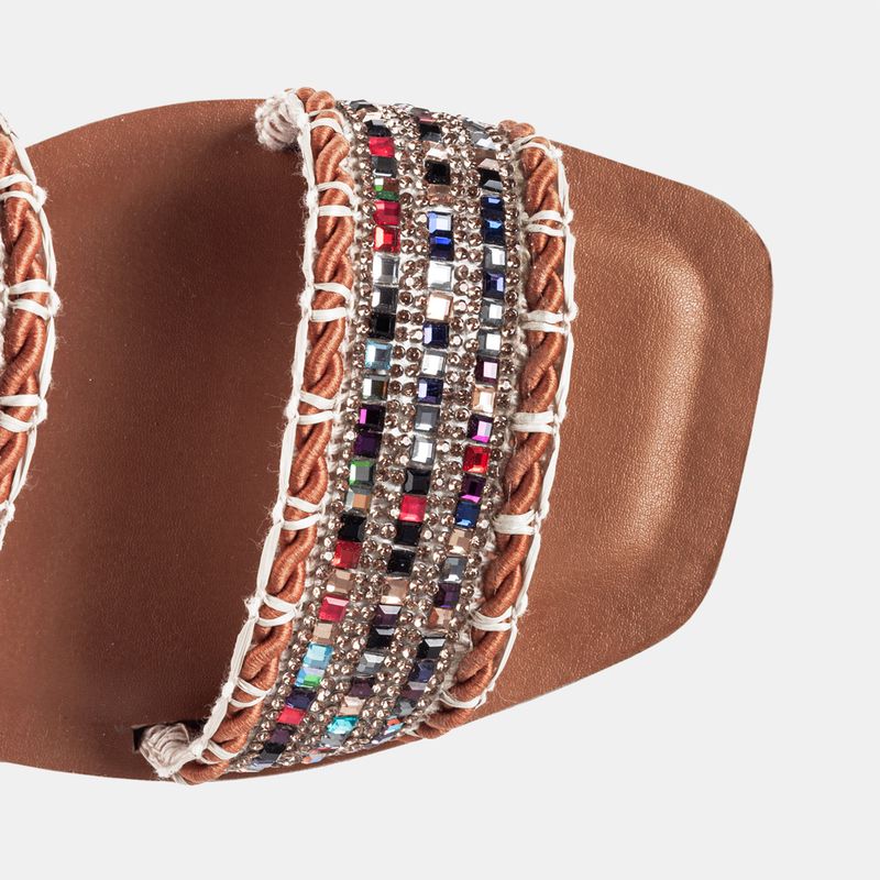 Rasteira com tiras grossas com aplicações de strass e pedras coloridas