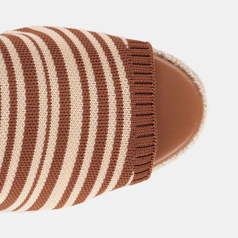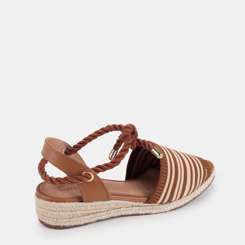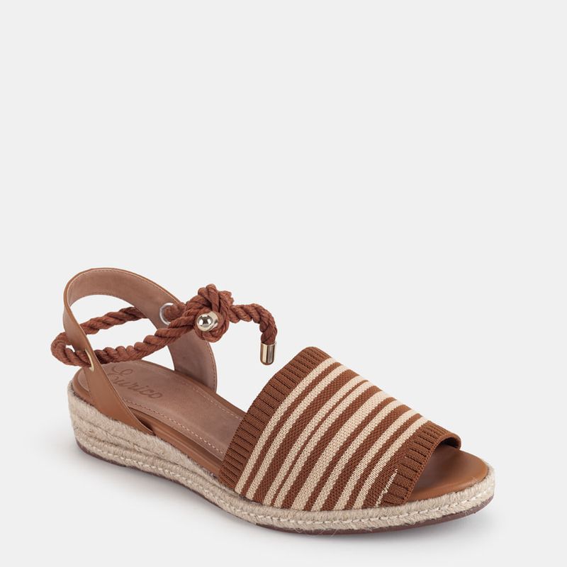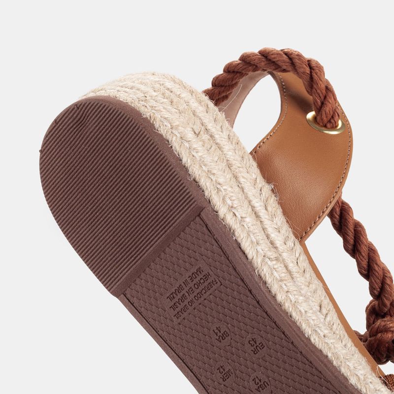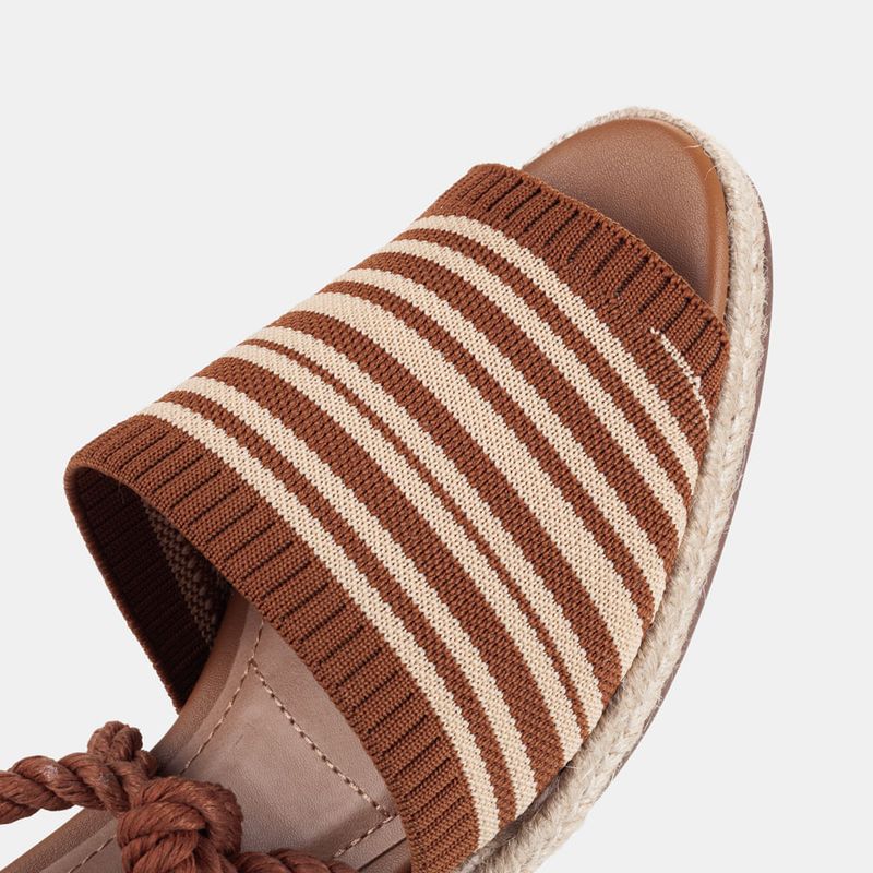 Esta sandália combina tons terrosos, ideal para um visual natural e elegante.