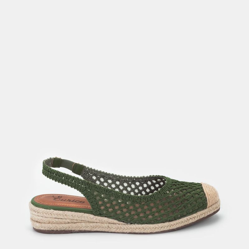 Sandália Anabela com biqueira em corda e fechamento ajustável em fivela Sintético verde Salto 4 cm P...