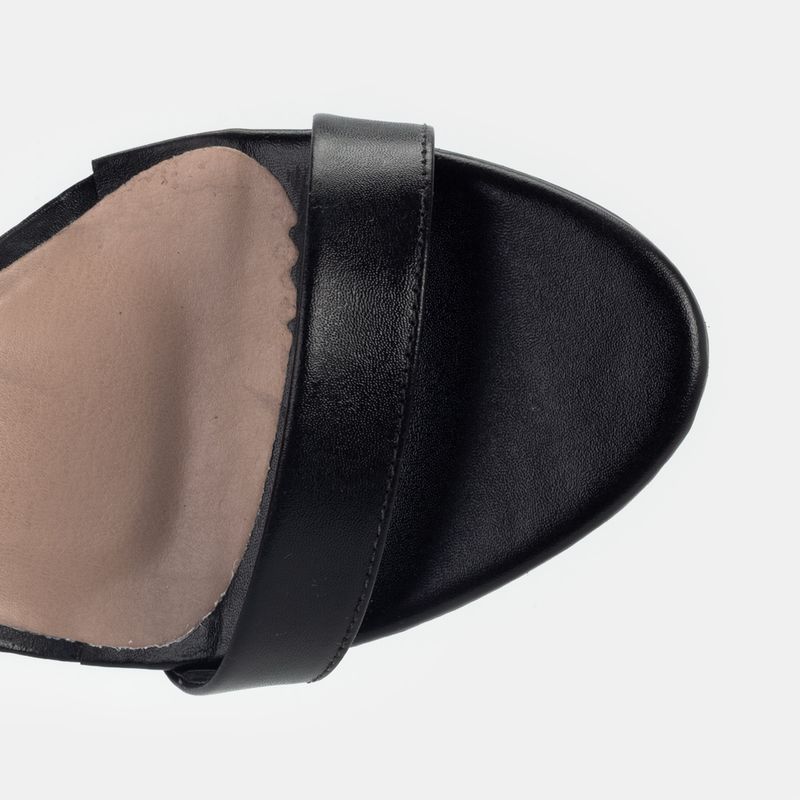Sandália básica com salto médio fino, traseira fechada e tornozeleira com ajuste em fivela Couro pr...
