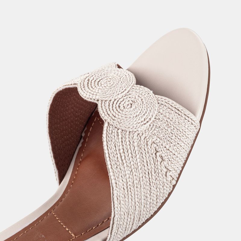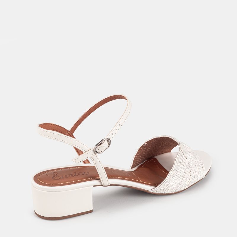 Sandália salto baixo blocado com detalhe bordado e fechamento em fivela