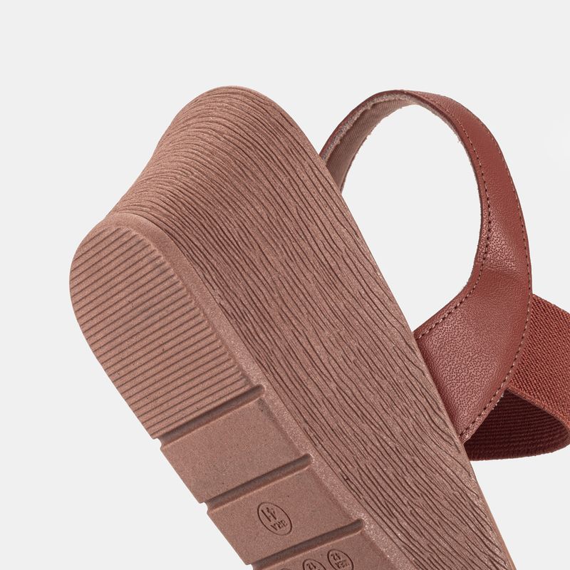 Sandália com salto Anabela, tira frontal única e tornozeleira elástica