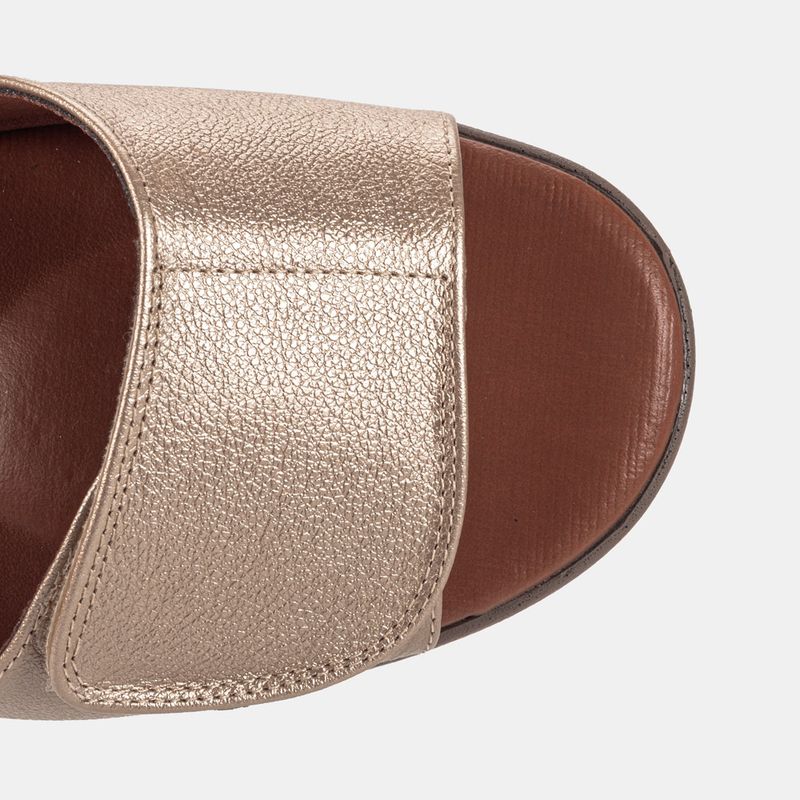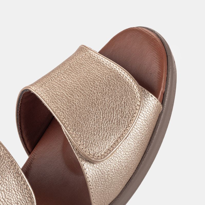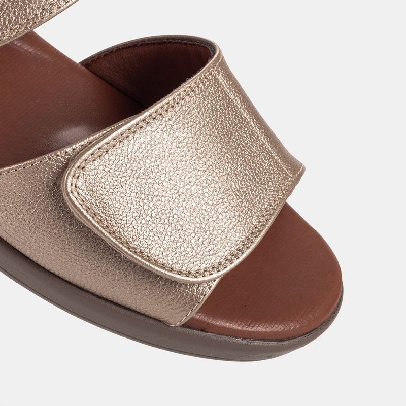 Esta sandália é uma opção sofisticada e neutra, ideal para iluminar o look com seu tom Champagne. Co...