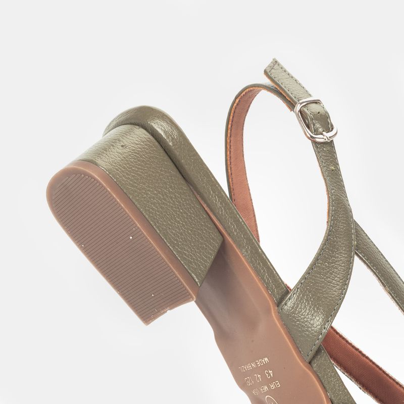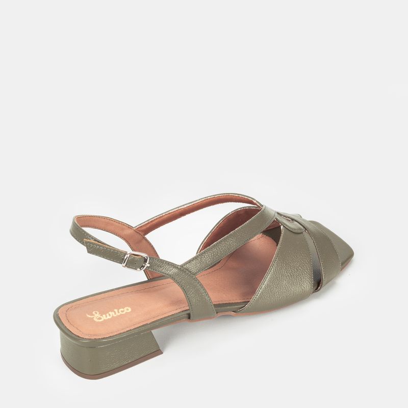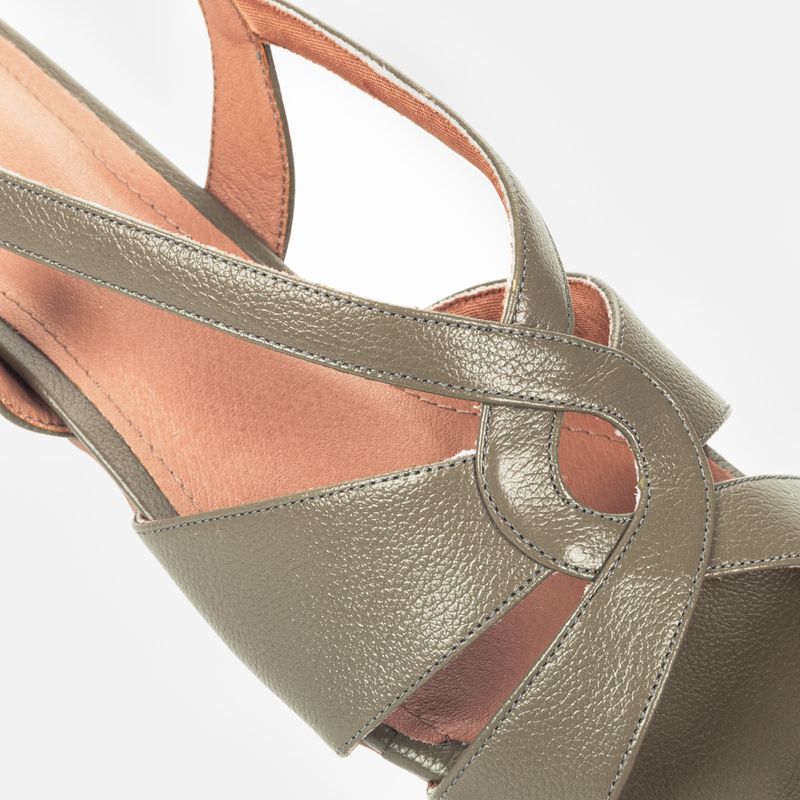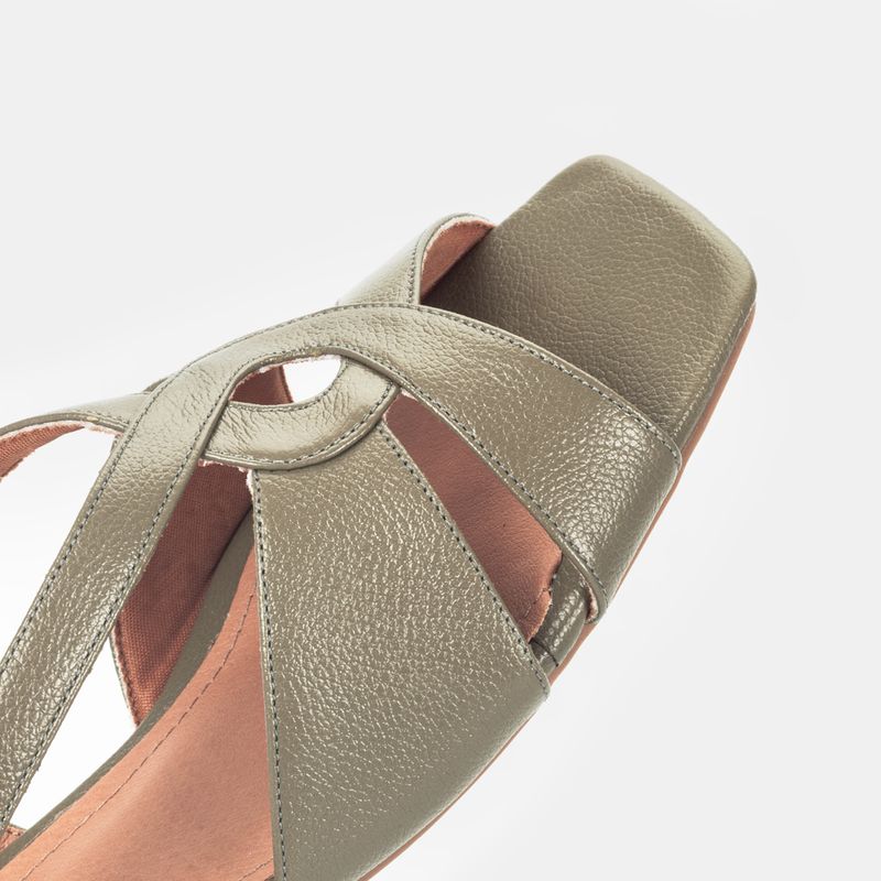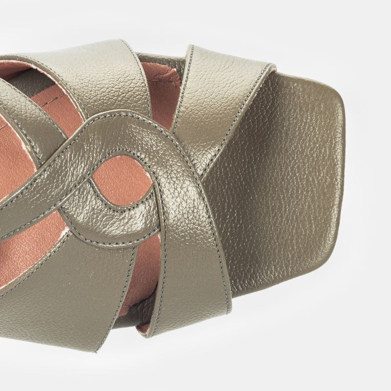 Sandália com salto blocado médio, tiras cruzadas frontal e tira traseira ajustável em fivela Couro v...