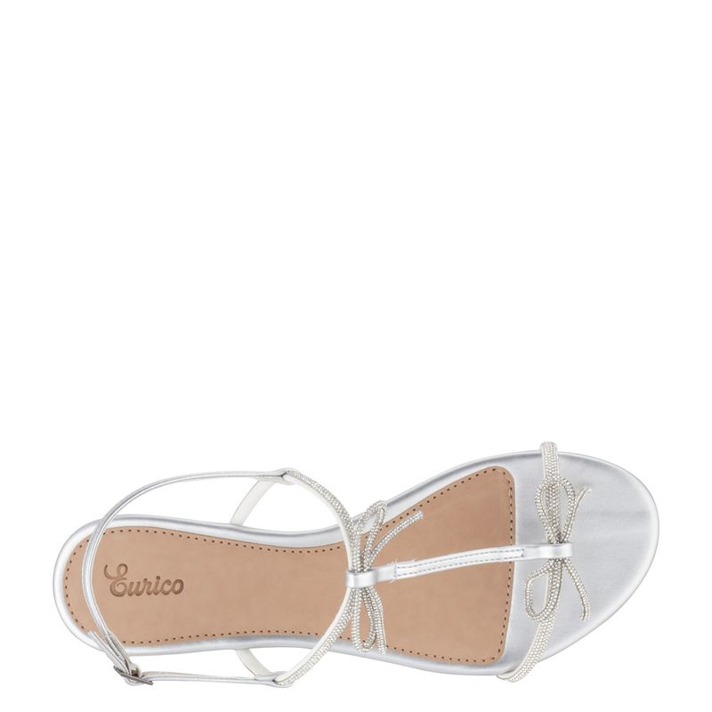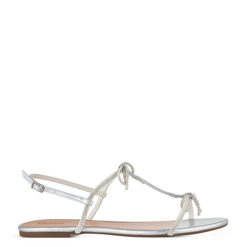Sandália flat com tiras com laço revestida com strass e tira traseira ajustável com fivela Sintétic...