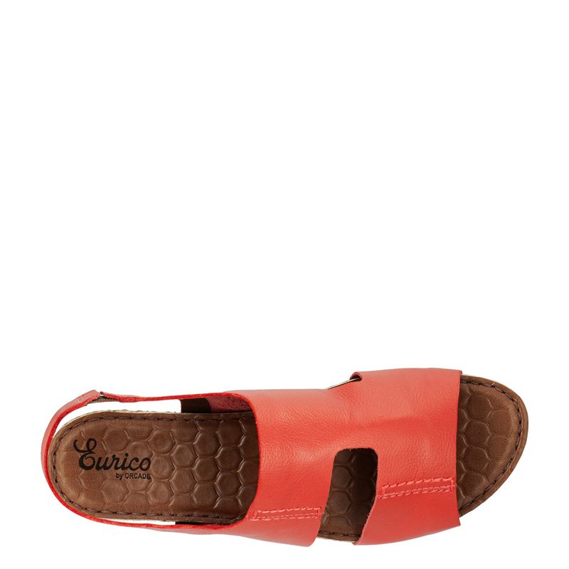 Sandália rasteira com recortes laterais e fechamento em tira com elástico traseiro Couro laranja P...