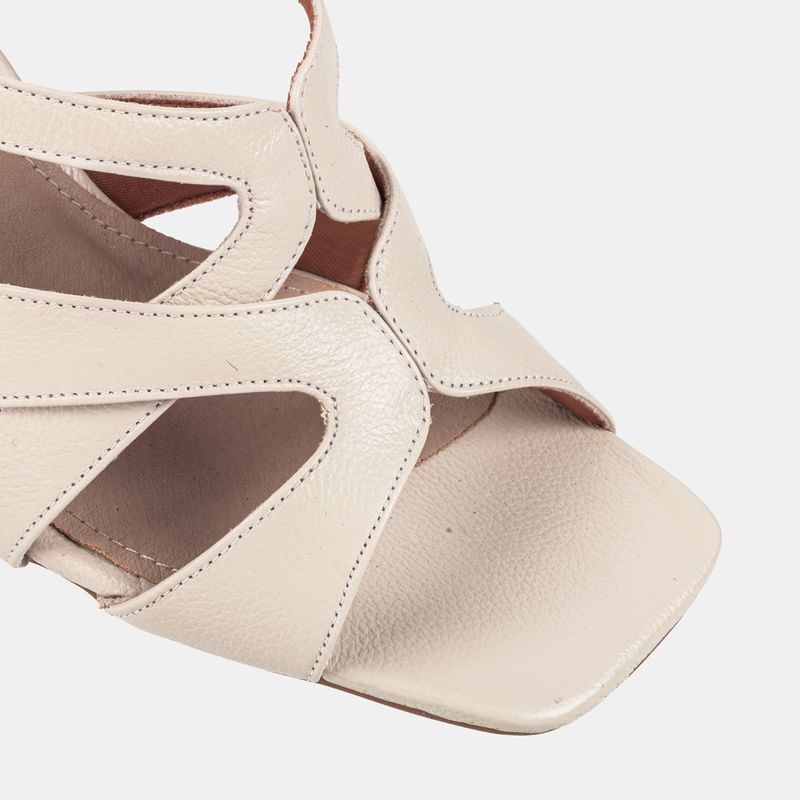 Esta sandália de couro salto alto em um elegante tom de off-white é a peça ideal para adicionar sofi...