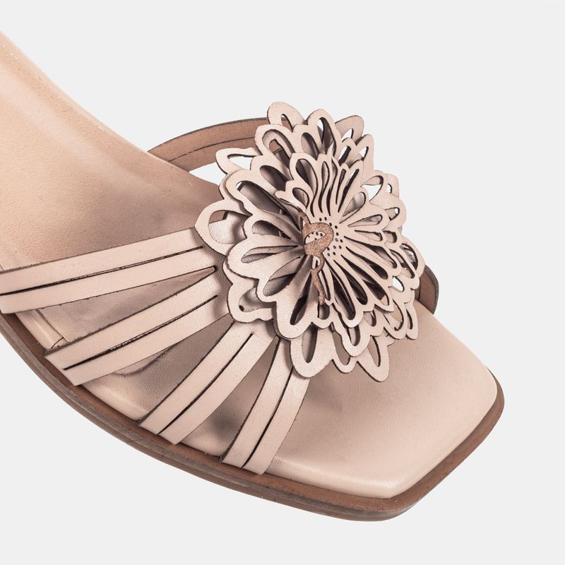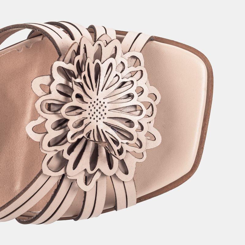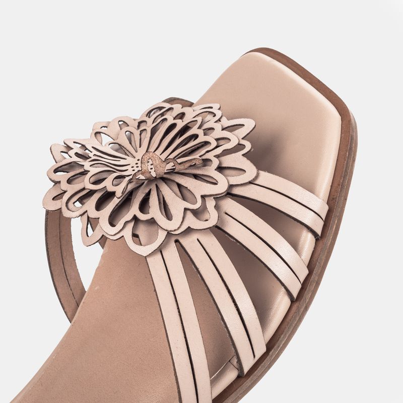 Essa sandália traz um delicado aplique flo...