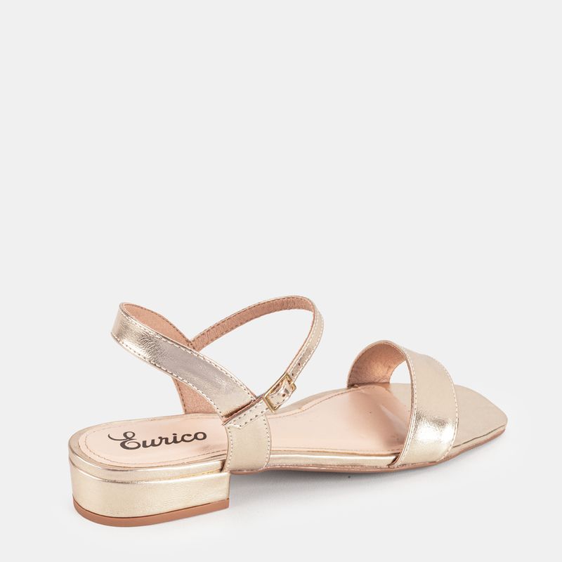 Sandália básica com salto blocado baixo, frente quadrada e tornozeleira com ajuste em fivela