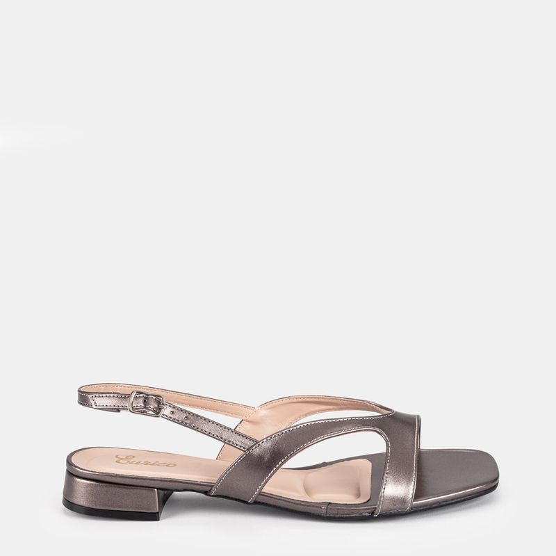 Adicione um toque moderno e metalizado ao seu visual com esta sandália.