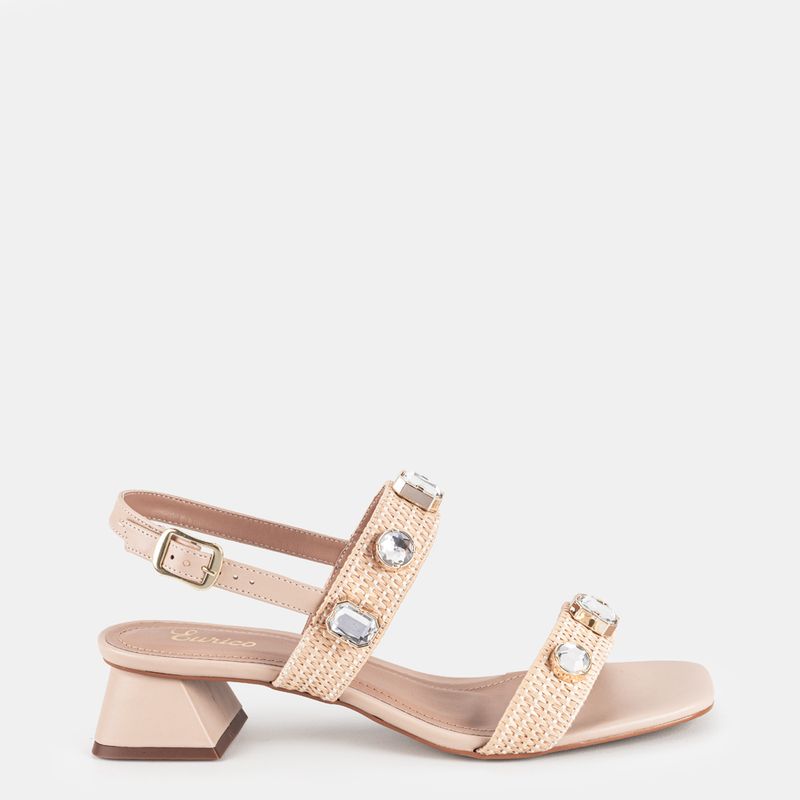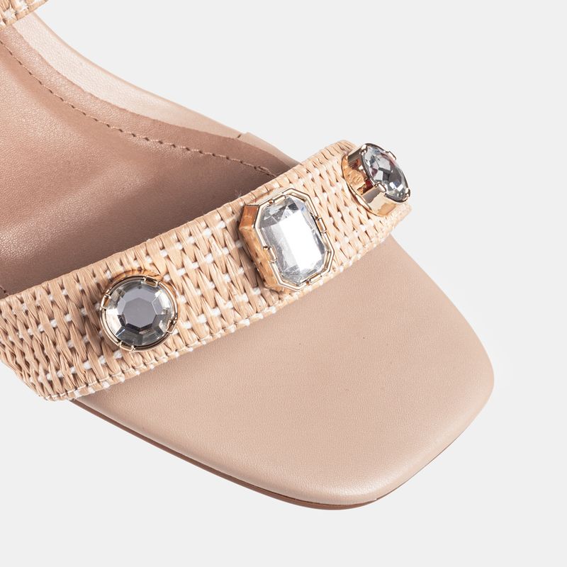 Esta sandália combina o charme artesanal da palha com o brilho das pedrarias, criando um modelo eleg...