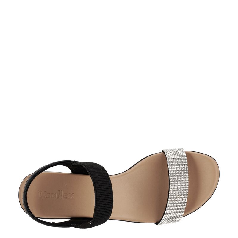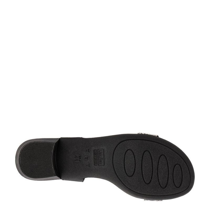 Sandália com salto baixo, tira grossa com strass e tira trazeira elástica Couro preto Salto 4 cm ...